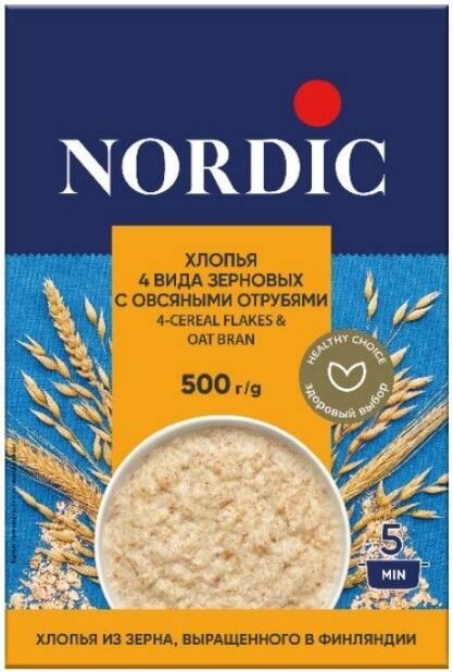 NORDIC 4-х зерновые с Овсяными Отрубями Хлопья (5 мин.) 500г интересное: