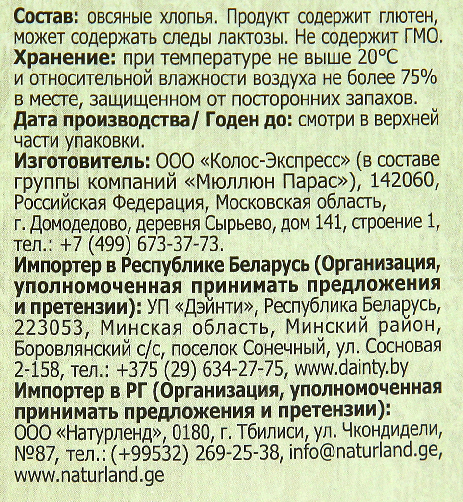 | Состав | овсяные хлопья |