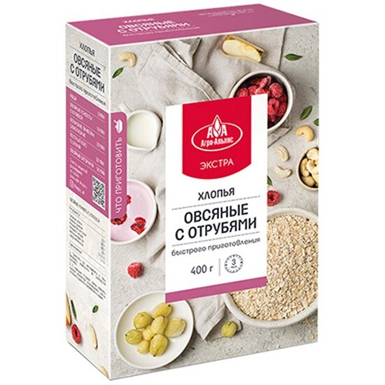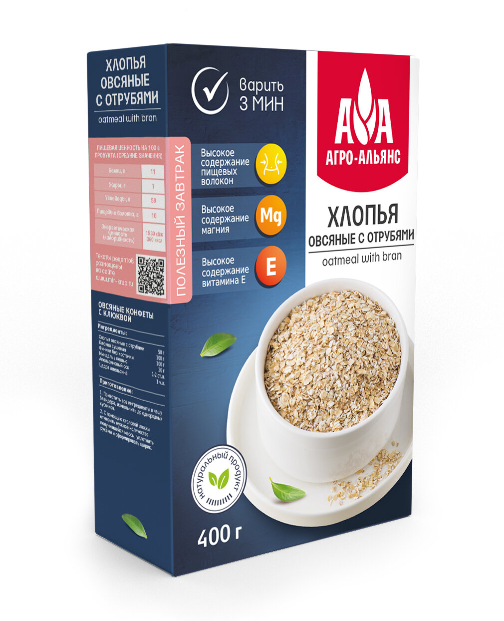 Купить Хлопья овсяные с отрубями "Агро-Альянс Экстра", 400 г