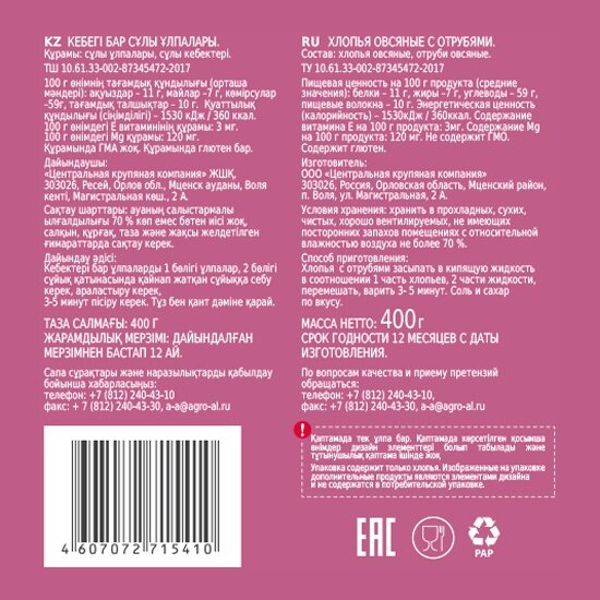 Хлопья овсяные с отрубями "Агро-Альянс Экстра", 400 г интересное: