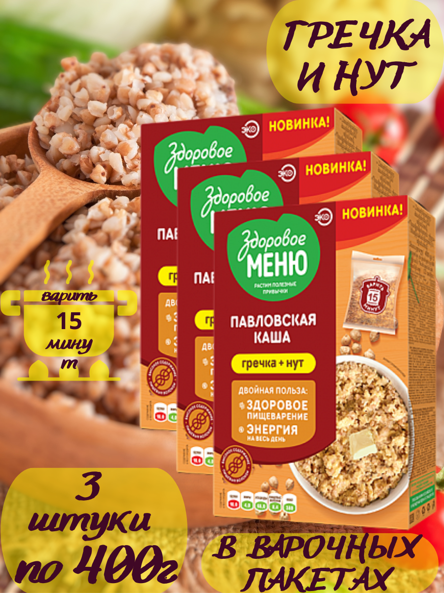 Набор 3 шт. "Павловская каша": гречневая с нутом "Здоровое меню" 400г интересное: