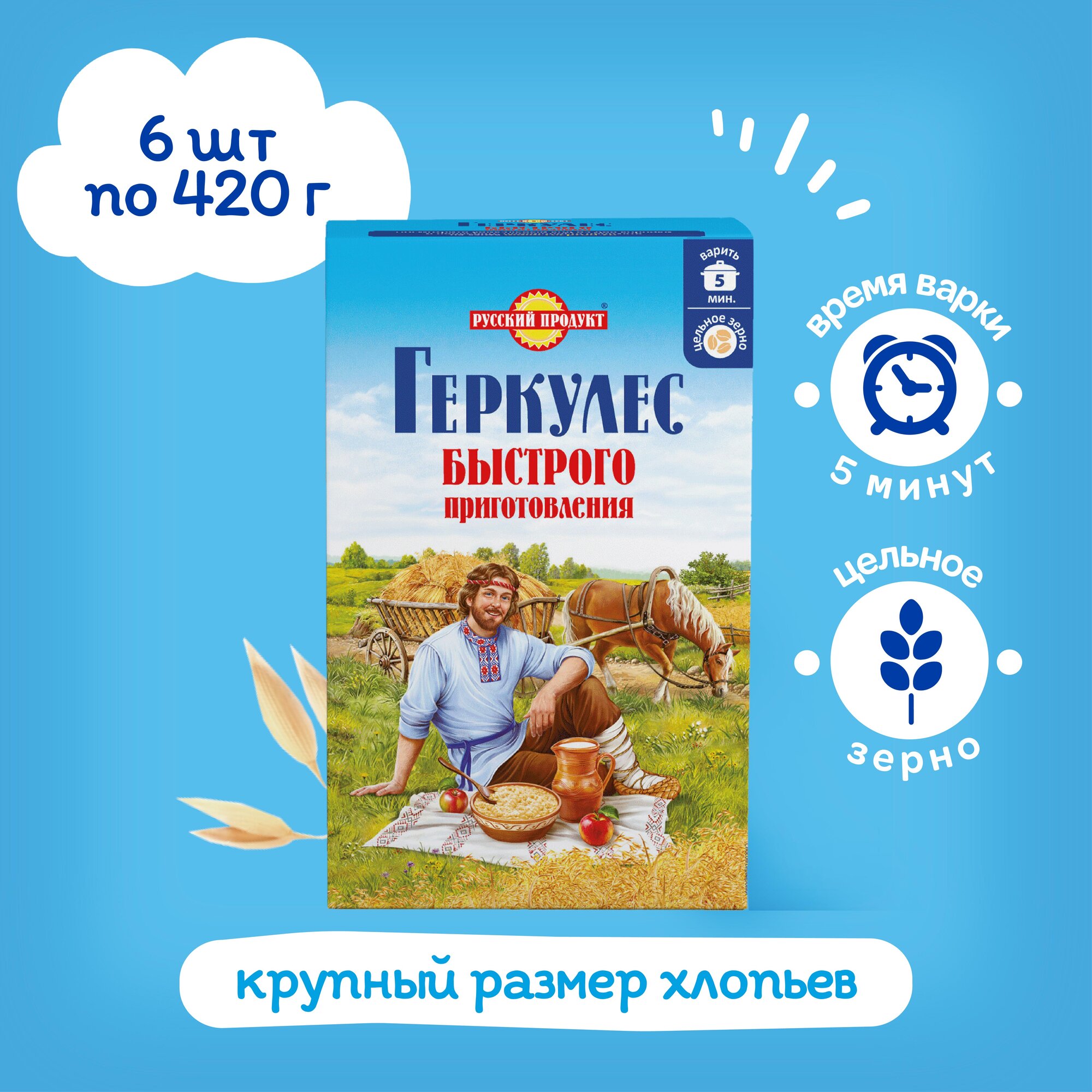 Овсяные хлопья быстрого приготовления Геркулес 420 гр x 6 шт, Русский Продукт интересное: