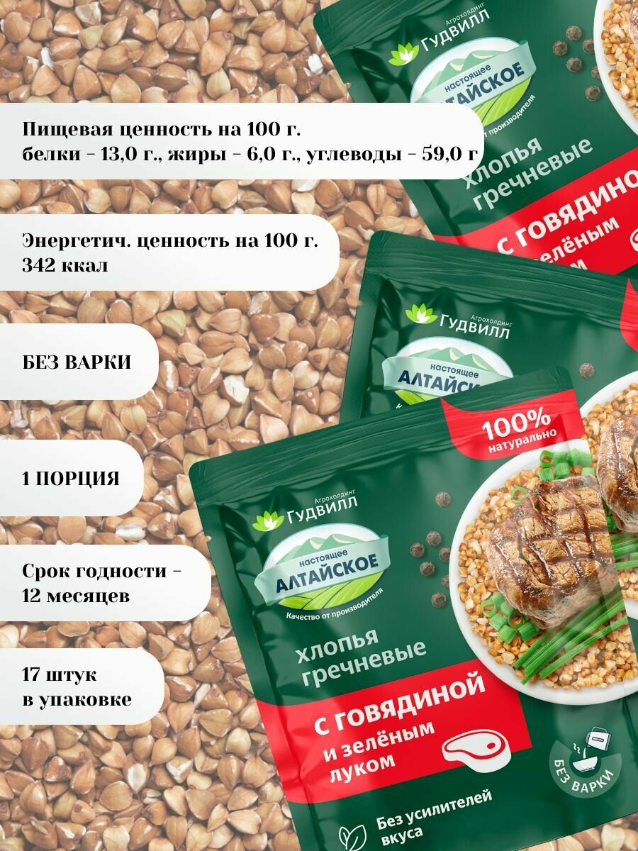 СохранитьХлопья гречневые хлопья с говядиной и луком Гудвилл не требующие варки, 40 грамм, 17 шт интересное: