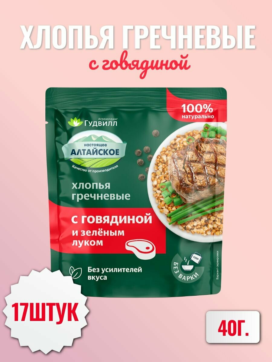 Купить Хлопья гречневые хлопья с говядиной и луком Гудвилл не требующие варки, 40 грамм, 17 шт