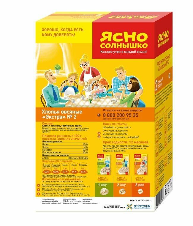 Хлопья 500 г Овсяные №2 Ясно Солнышко, 1 шт интересное: