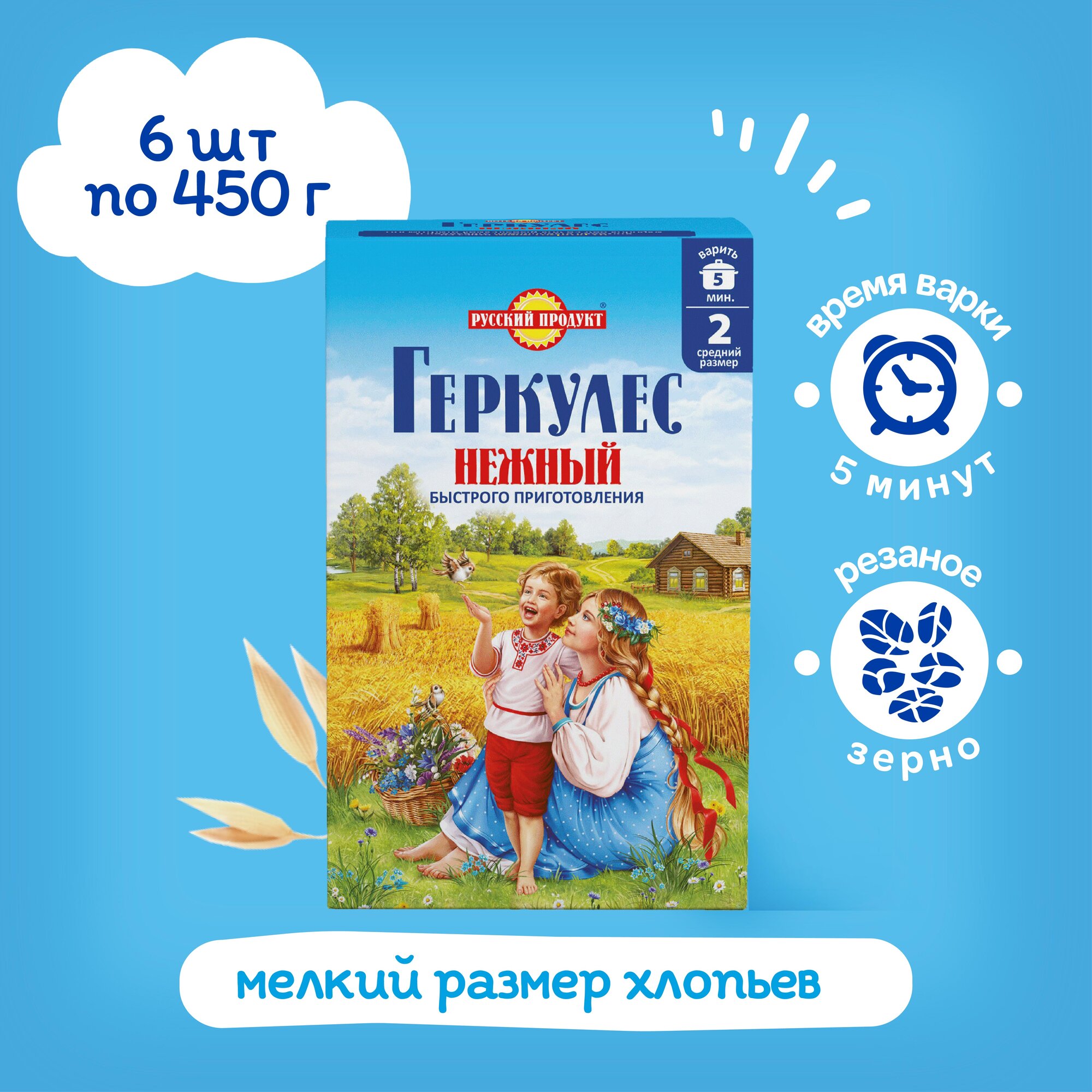 Купить Овсяные хлопья быстрого приготовления Геркулес Нежный 450 гр x 6 шт в упаковке, Русский Продукт