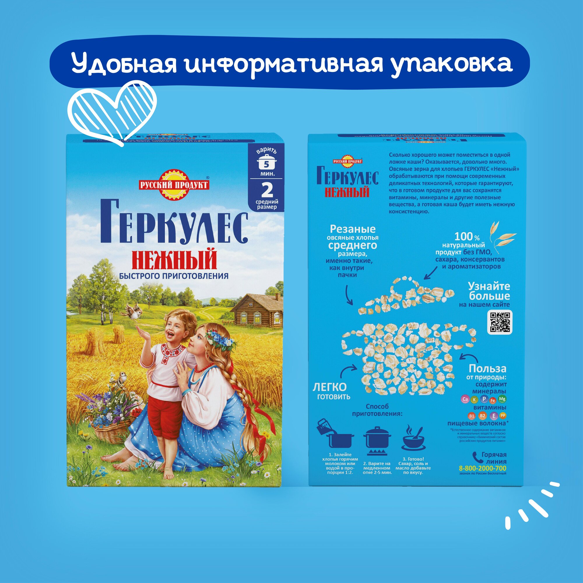 Овсяные хлопья быстрого приготовления Геркулес Нежный 450 гр x 6 шт в упаковке, Русский Продукт интересное: