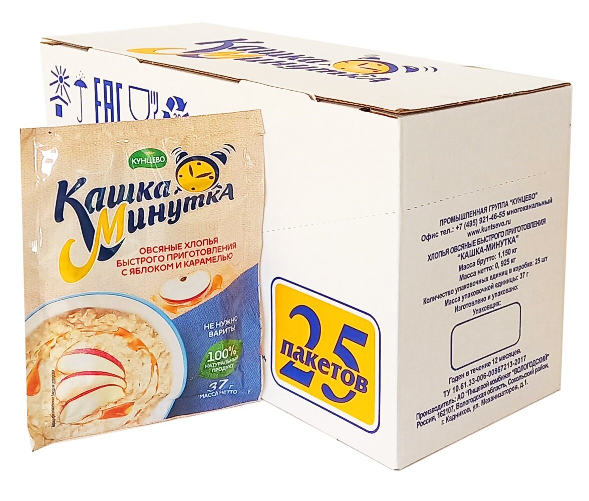Хлопья овсяные "Кашка-Минутка" с яблоком и карамелью интересное: