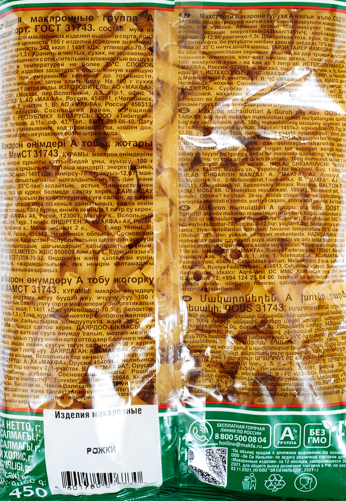 Рожки группа А в/с 0,45 "MAKFA" интересное: