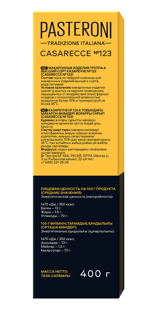 Макароны из твердых сортов Казаречче №123 Pasteroni 400г. интересное: