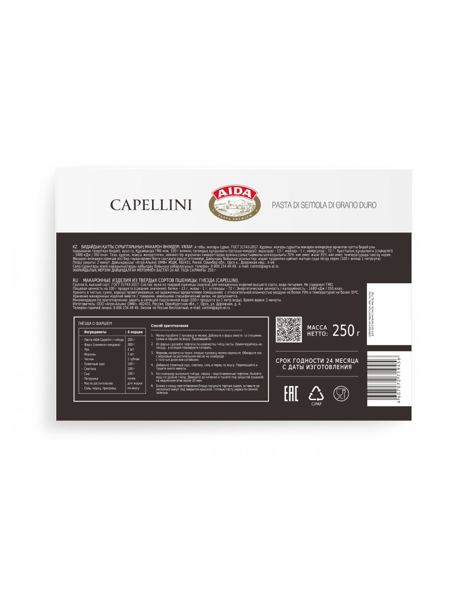 Макаронные изделия AIDA Capellini / Гнезда Капеллини 250г интересное: