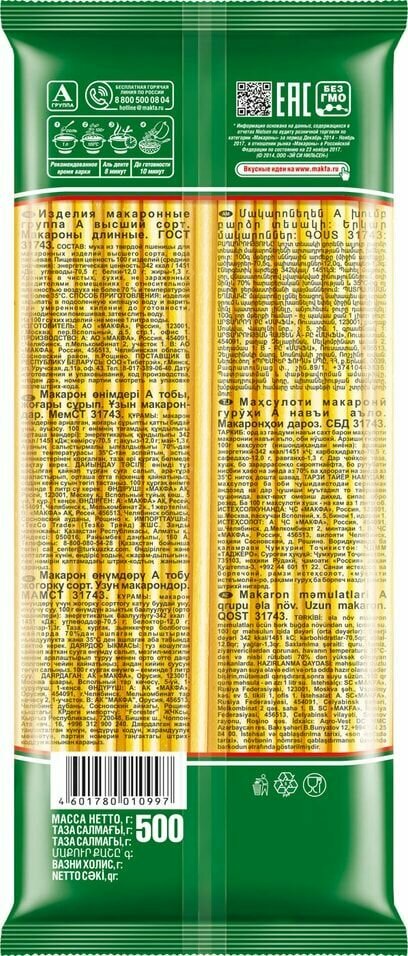 Макаронные изделия Makfa длинные 500 г интересное:
