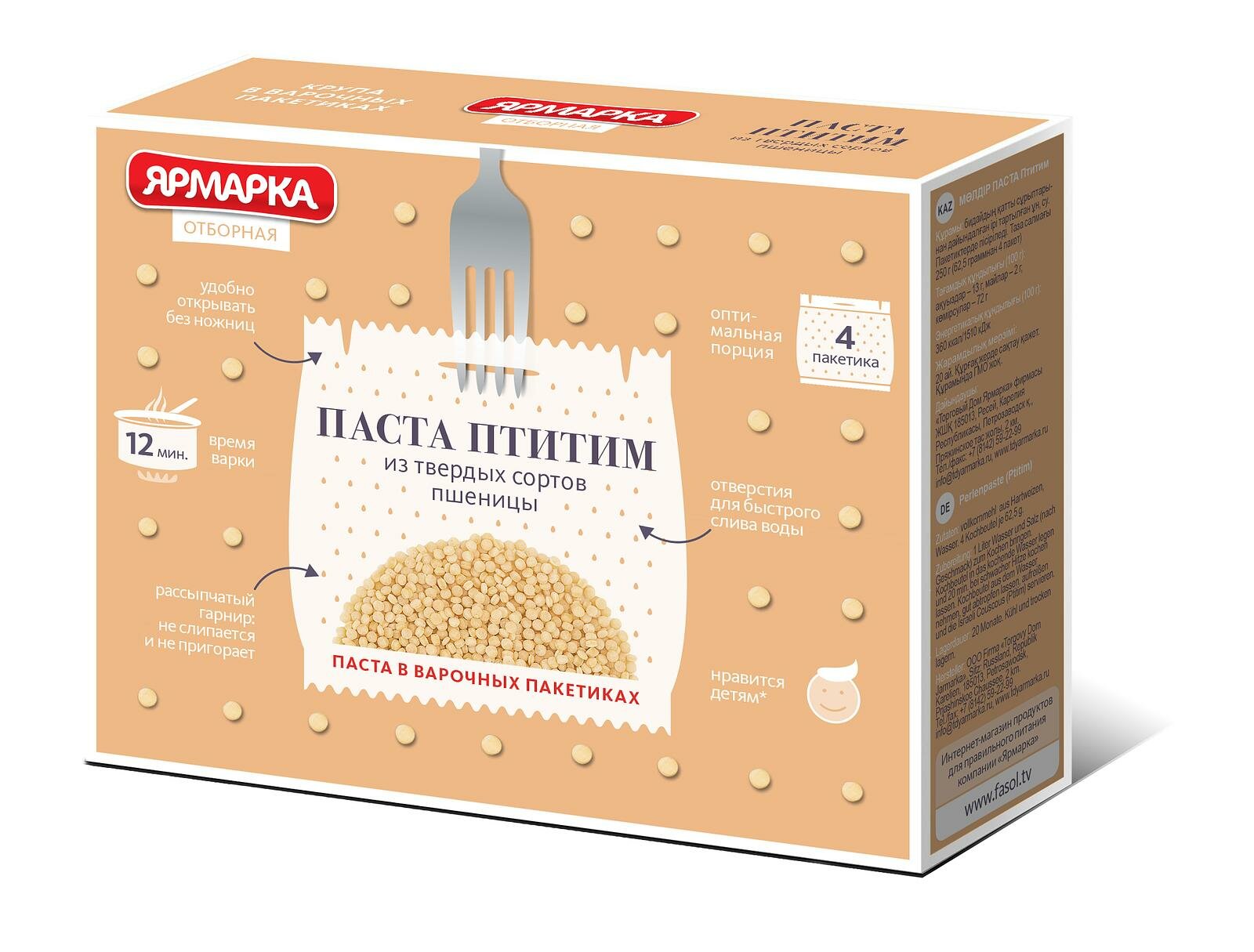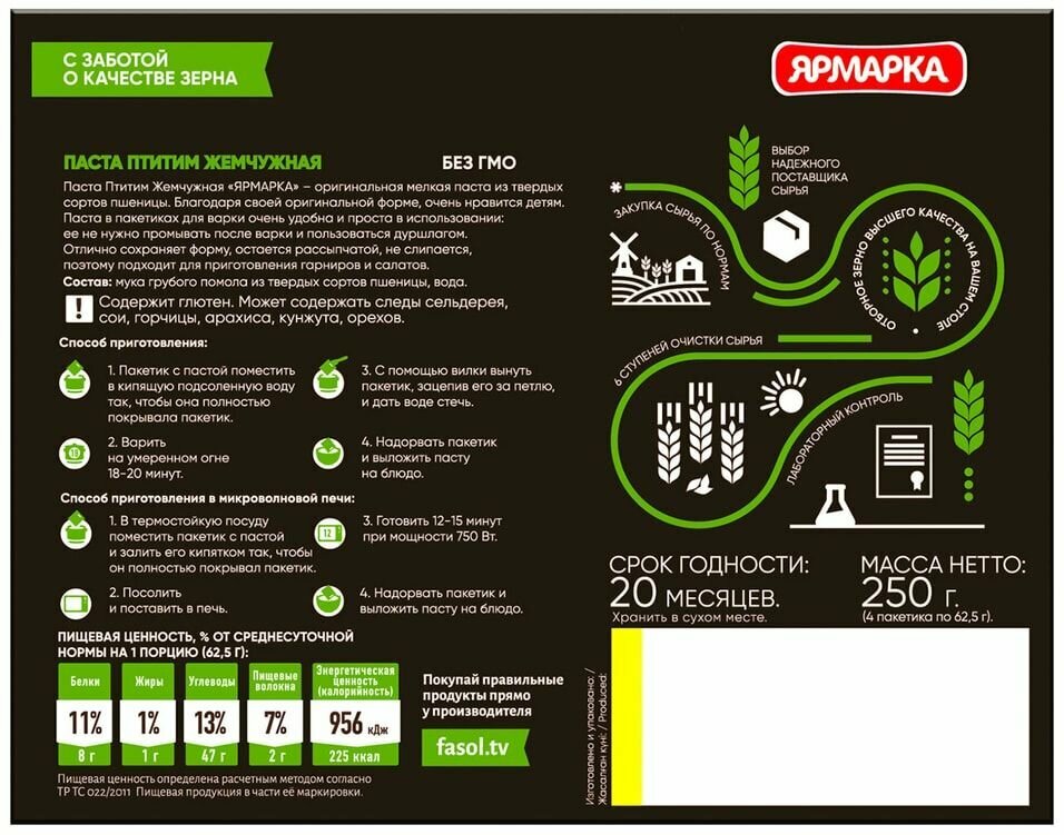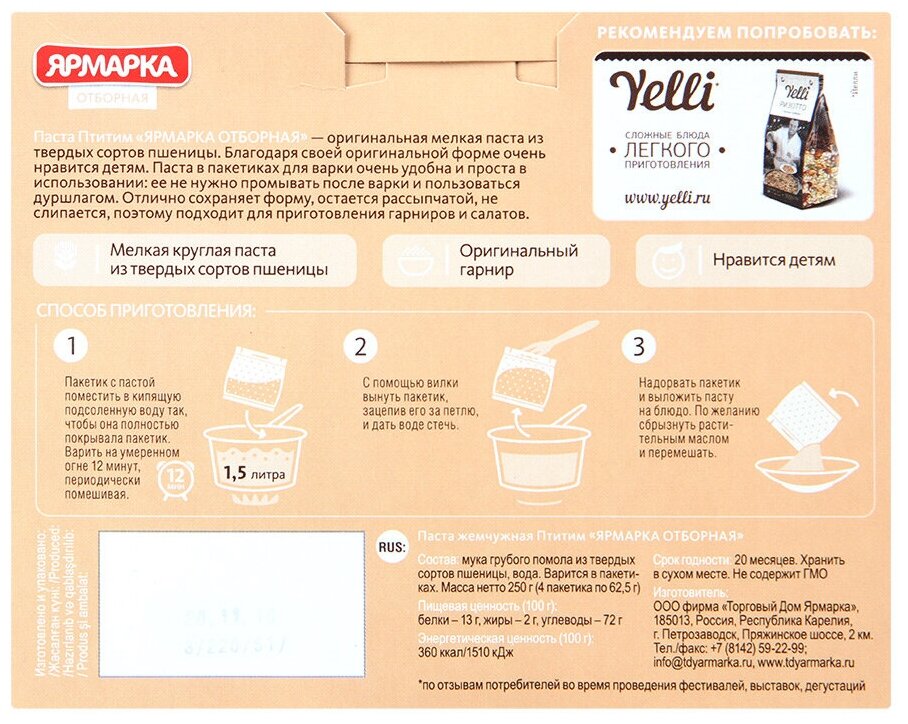 Паста жемчужная "Птитим" в варочных пакетах ярмарка, 250 г интересное: