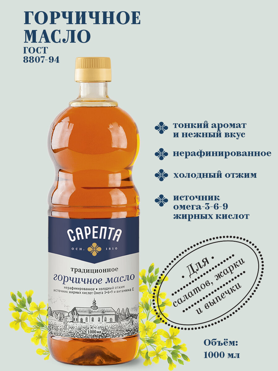 Горчичное масло "Сарепта" нерафинированное холодного отжима 1л. интересное: