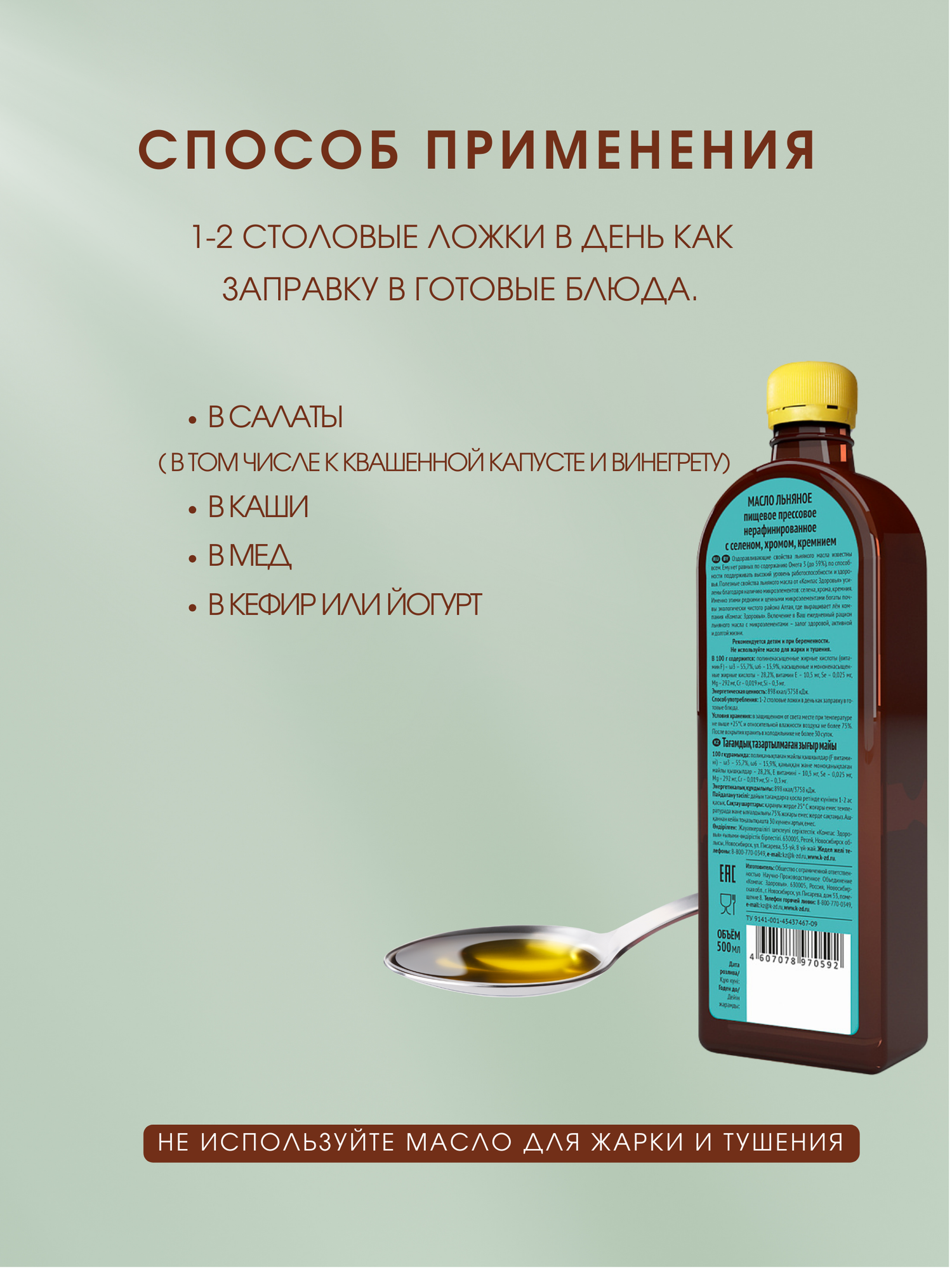 Льняное масло с селеном, хромом, кремнием, 500 миллилитров, от производителя Компас Здоровья