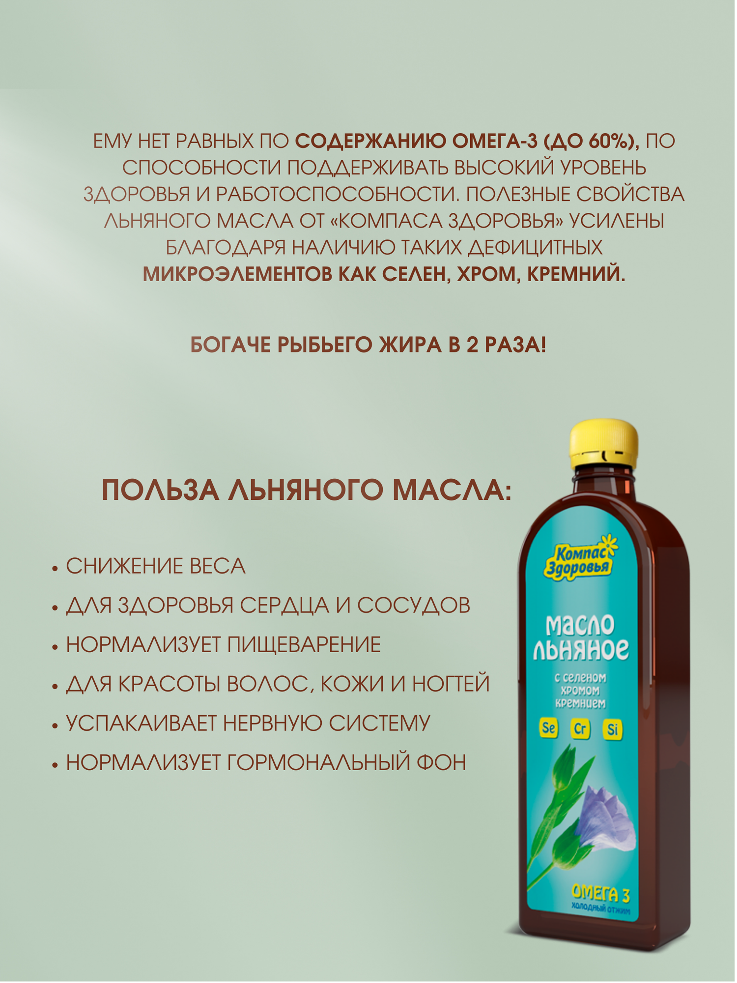 Масло льняное 200 мл с селеном хромом кремнием Компас здоровья
