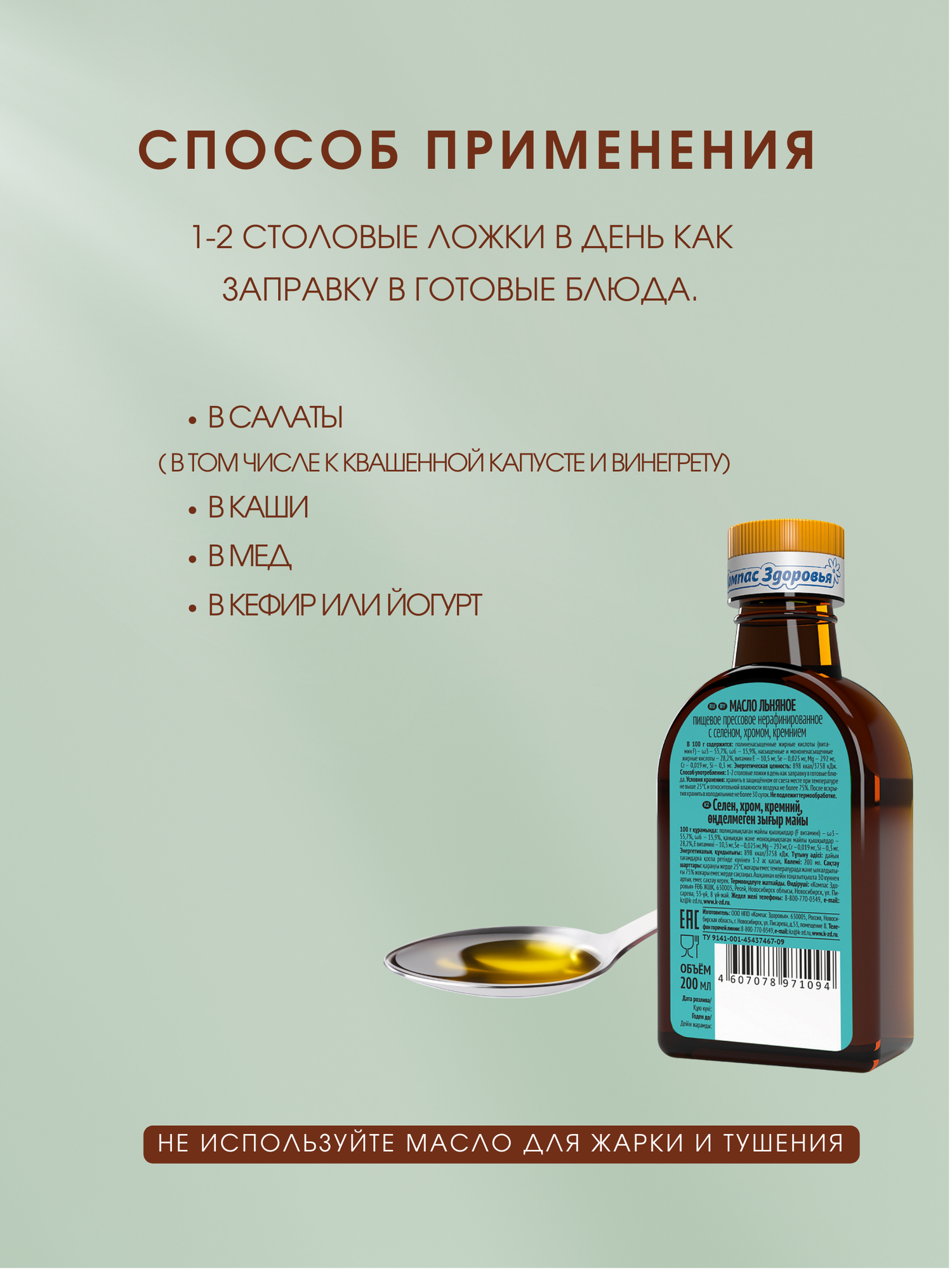 СохранитьМасло льняное с селеном,хромом,кремнием, 200 мл Компас здоровья (2шт. в наборе) интересное: