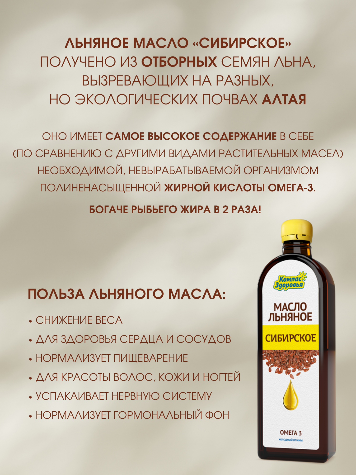 Масло льняное «Сибирское», 500 мл, Компас Здоровья