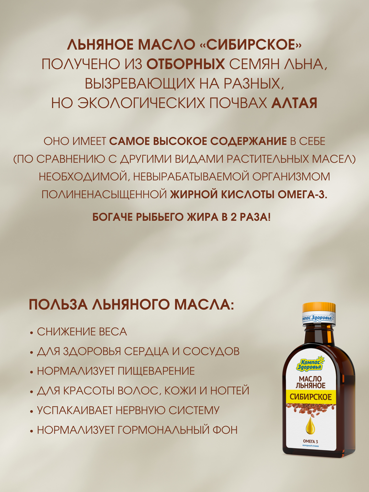 Масло льняное Сибирское 200 мл Компас Здоровья