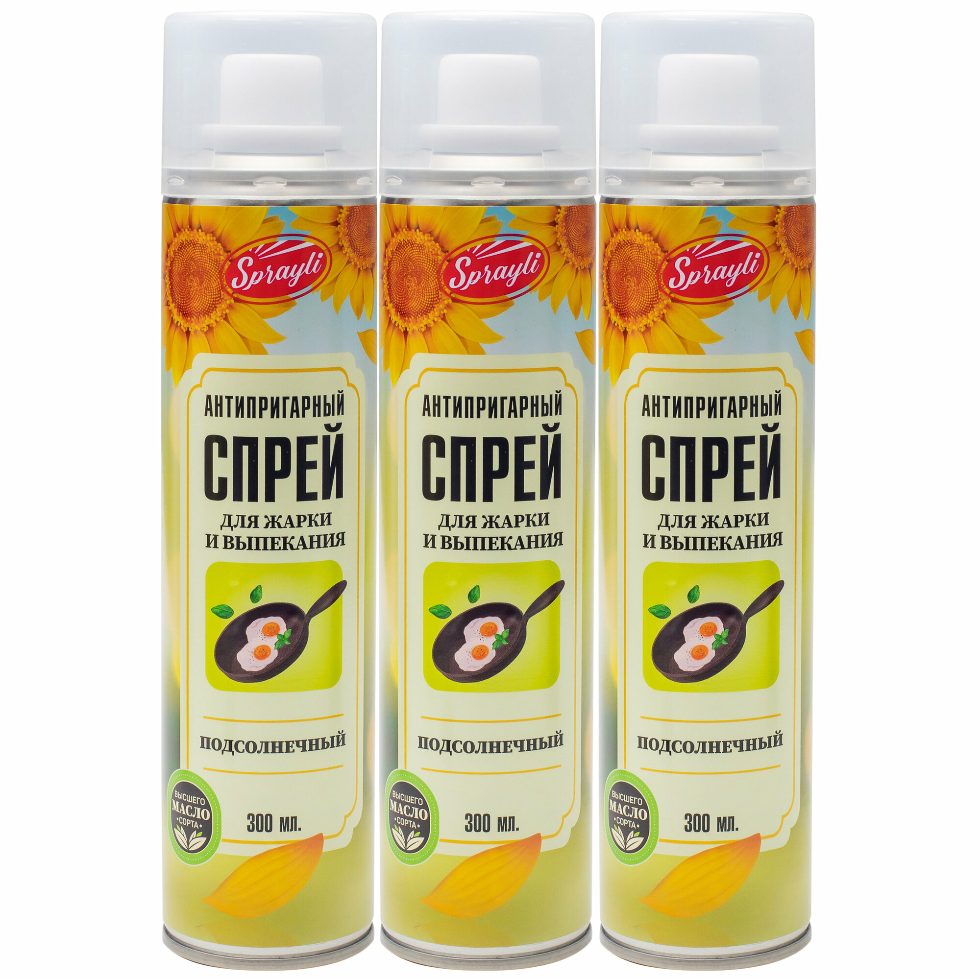 Купить 3 антипригарных масло спрея для жарки и выпекания Sprayli с подсолнечным маслом