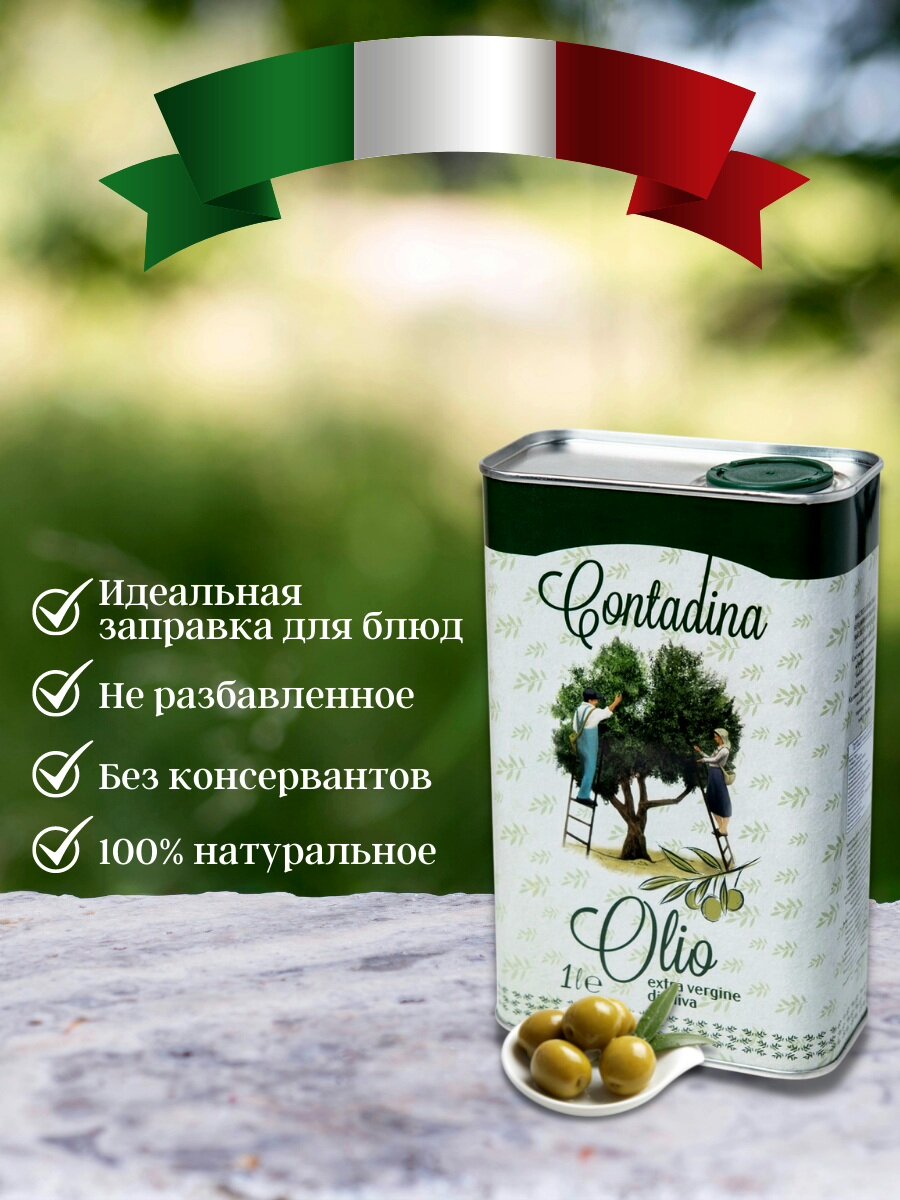 Натуральное оливковое масло Contadina Olio Extra Vergine Di Oliva 1л (Италия) интересное: