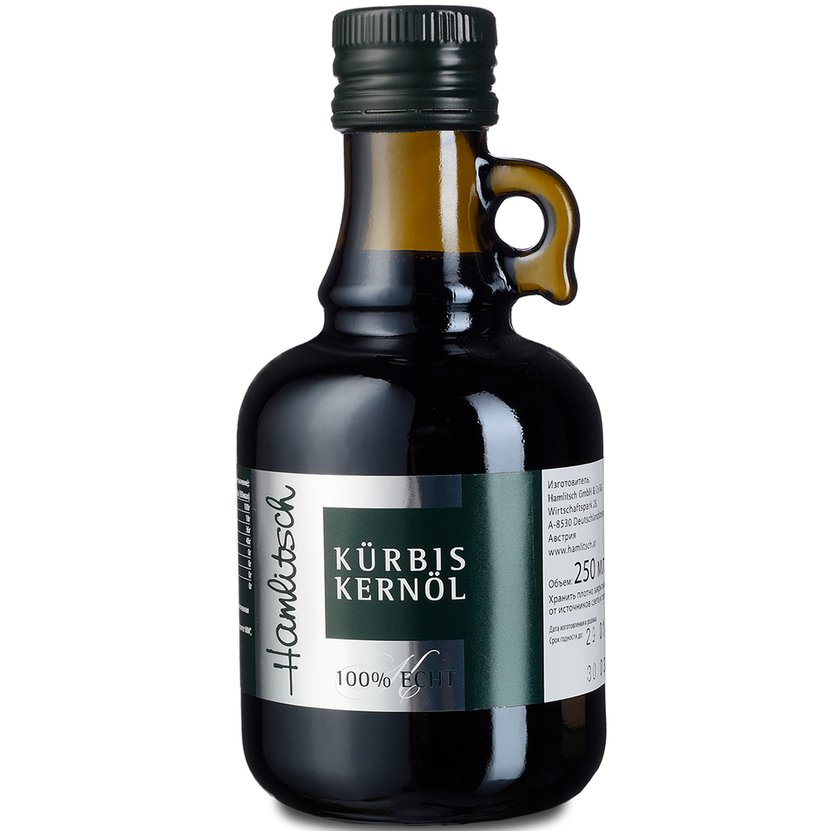 Купить Тыквенное масло нерафинированное HAMLITSCH Kurbiskernol 100% Echt, 250 мл, кувшин стекло. Австрия.