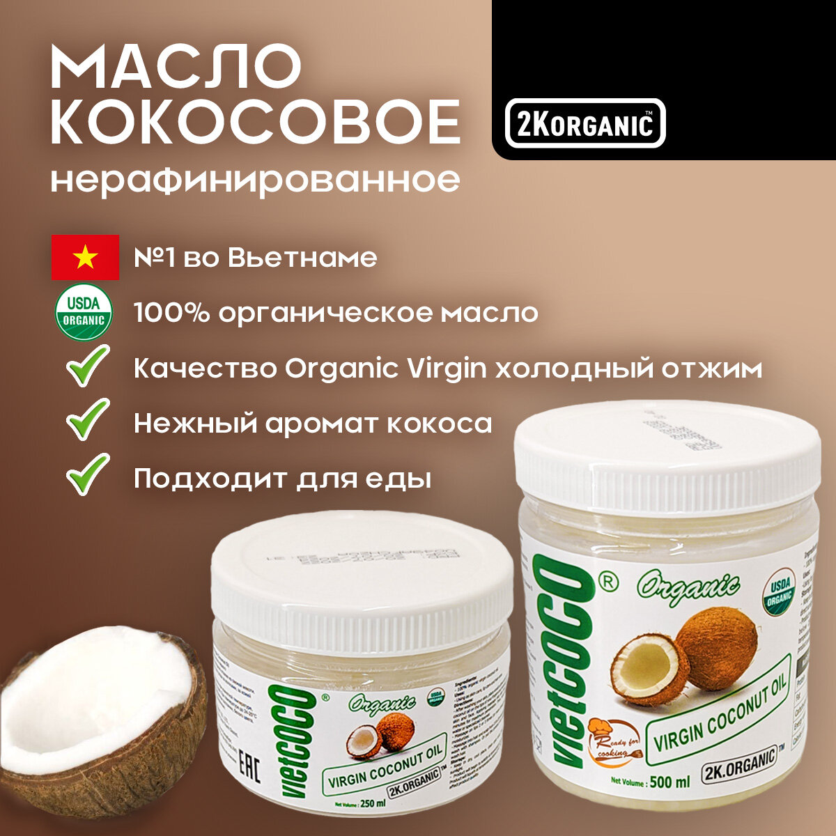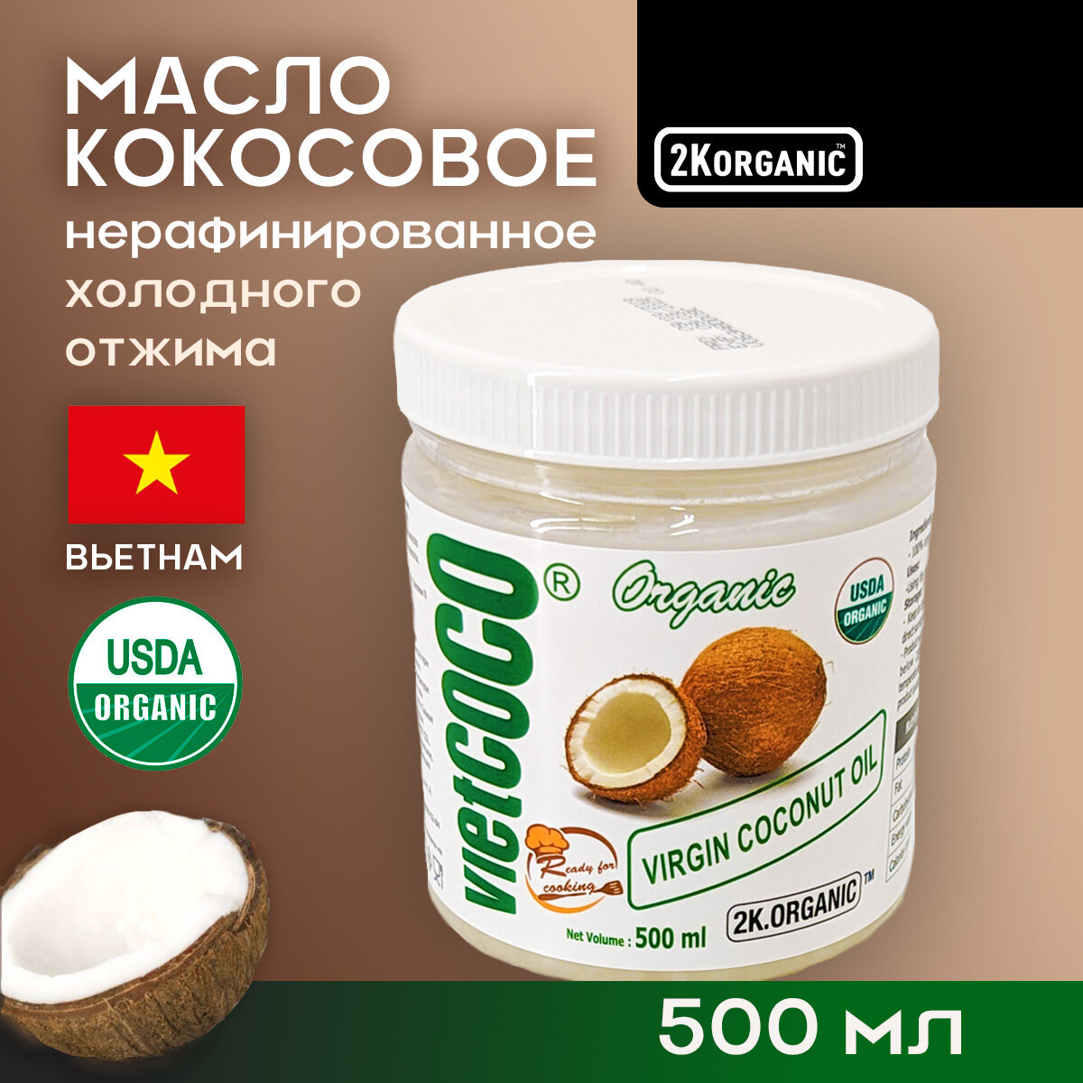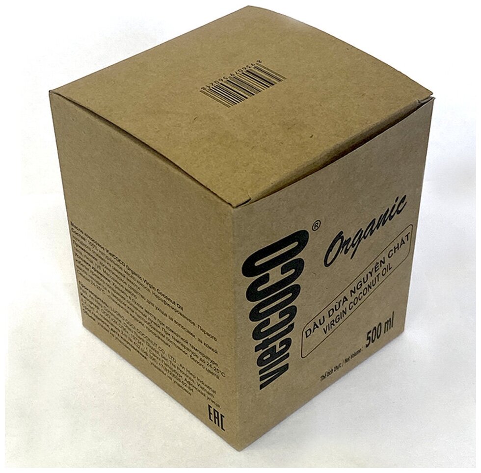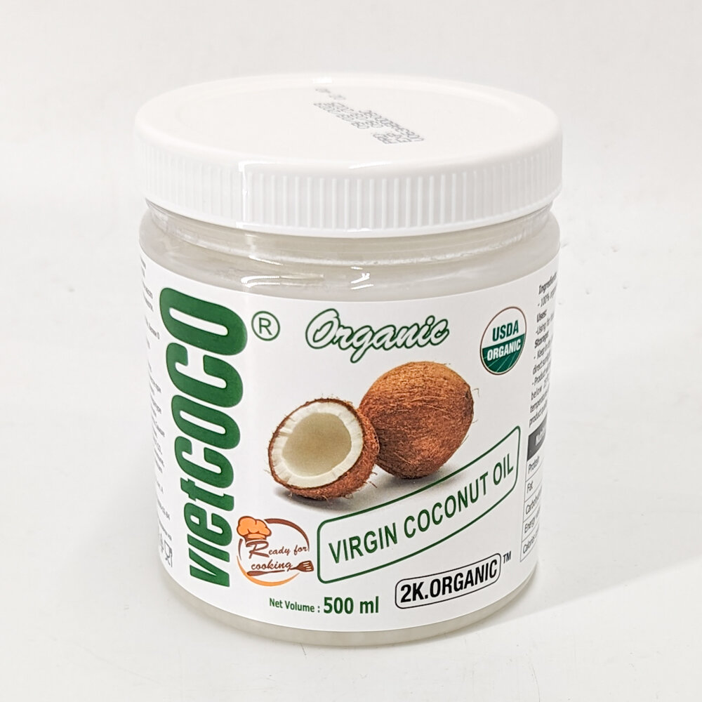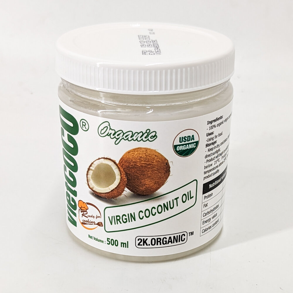 Масло кокосовое нерафинированное холодного отжима 250мл. Для еды, жарки. VietCOCO (Вьетнам).
