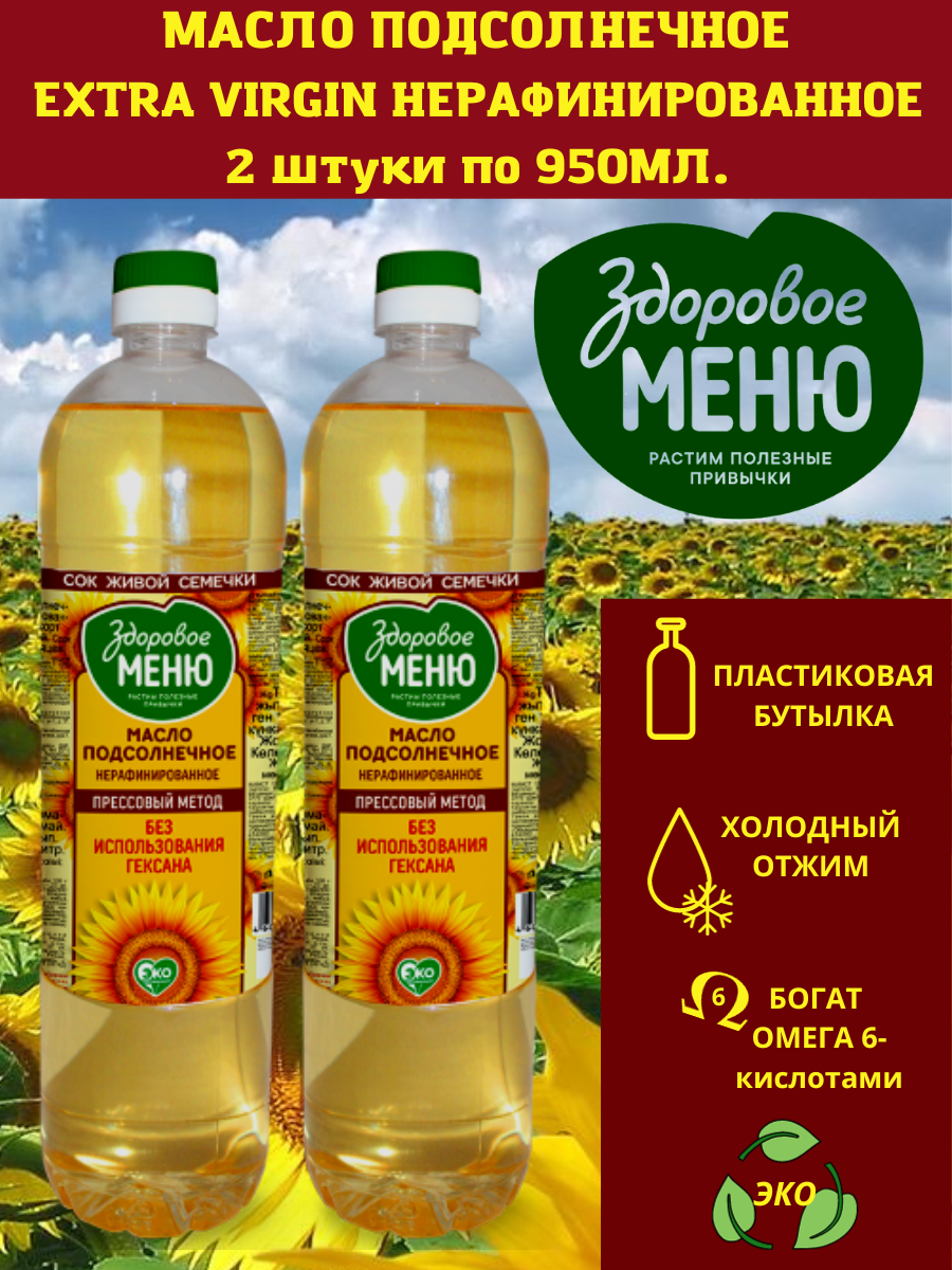 Набор 2 шт. Масло подсолнечное Здоровое меню нерафинированное, 0.9 лх2шт. интересное: