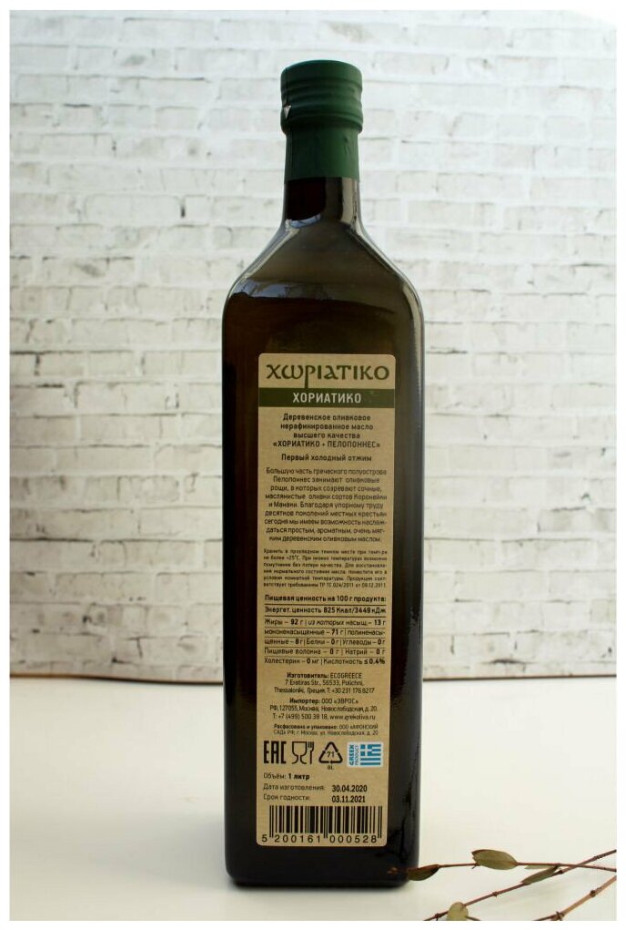 Масло оливковое Extra Virgin Хориатико/ Horiatiko Peloponnese, 1л Греция интересное: