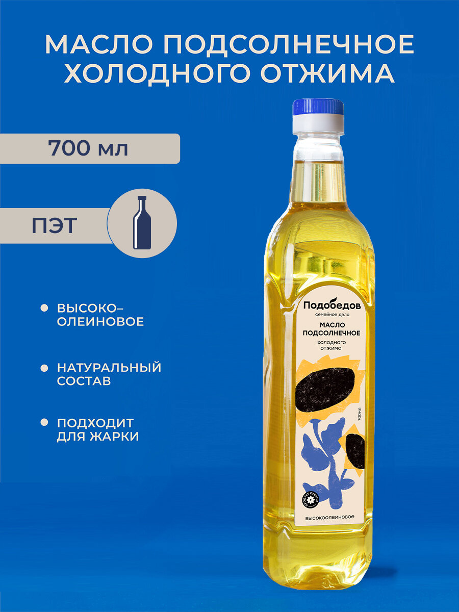 Высокоолеиновое подсолнечное масло холодного отжима ТМ Подобедов 700 мл интересное: