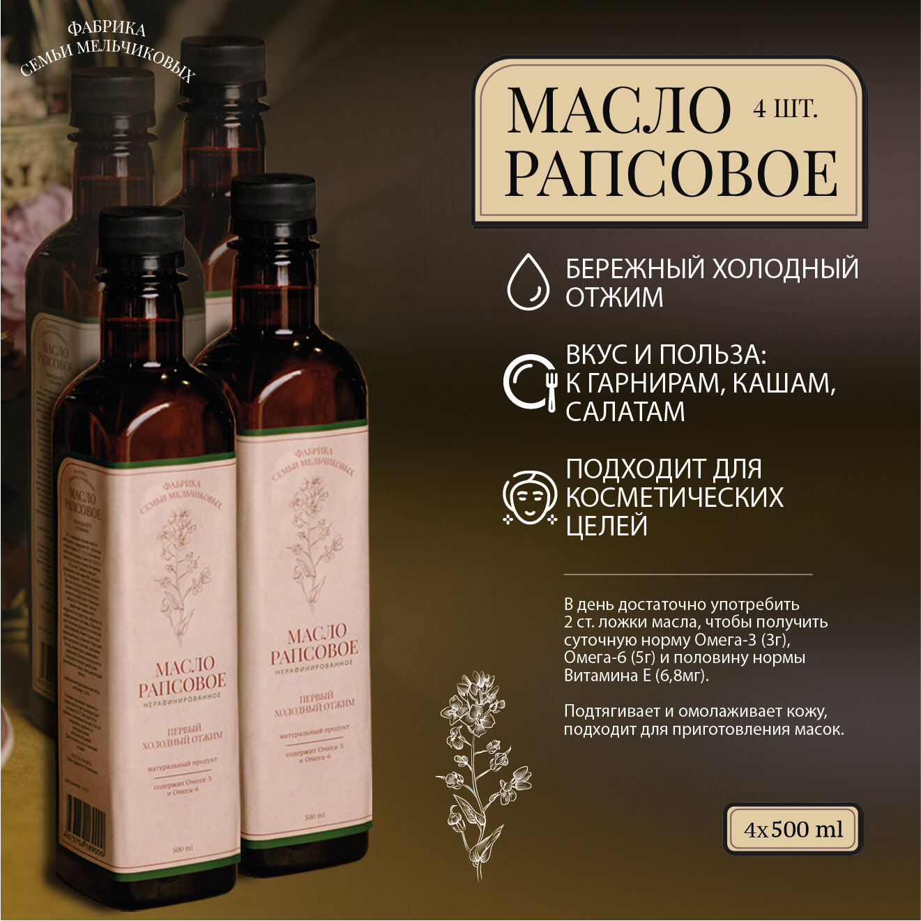 Рапсовое масло холодного отжима 4 по 500 мл интересное: