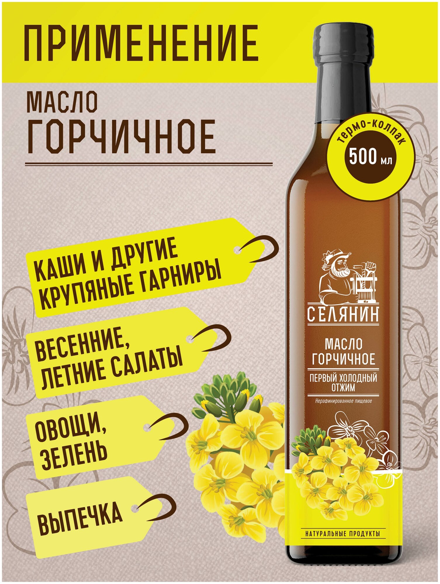 Купить Масло горчичное, нерафинированное, холодного отжима, натуральное, пищевое, 500мл., стекло