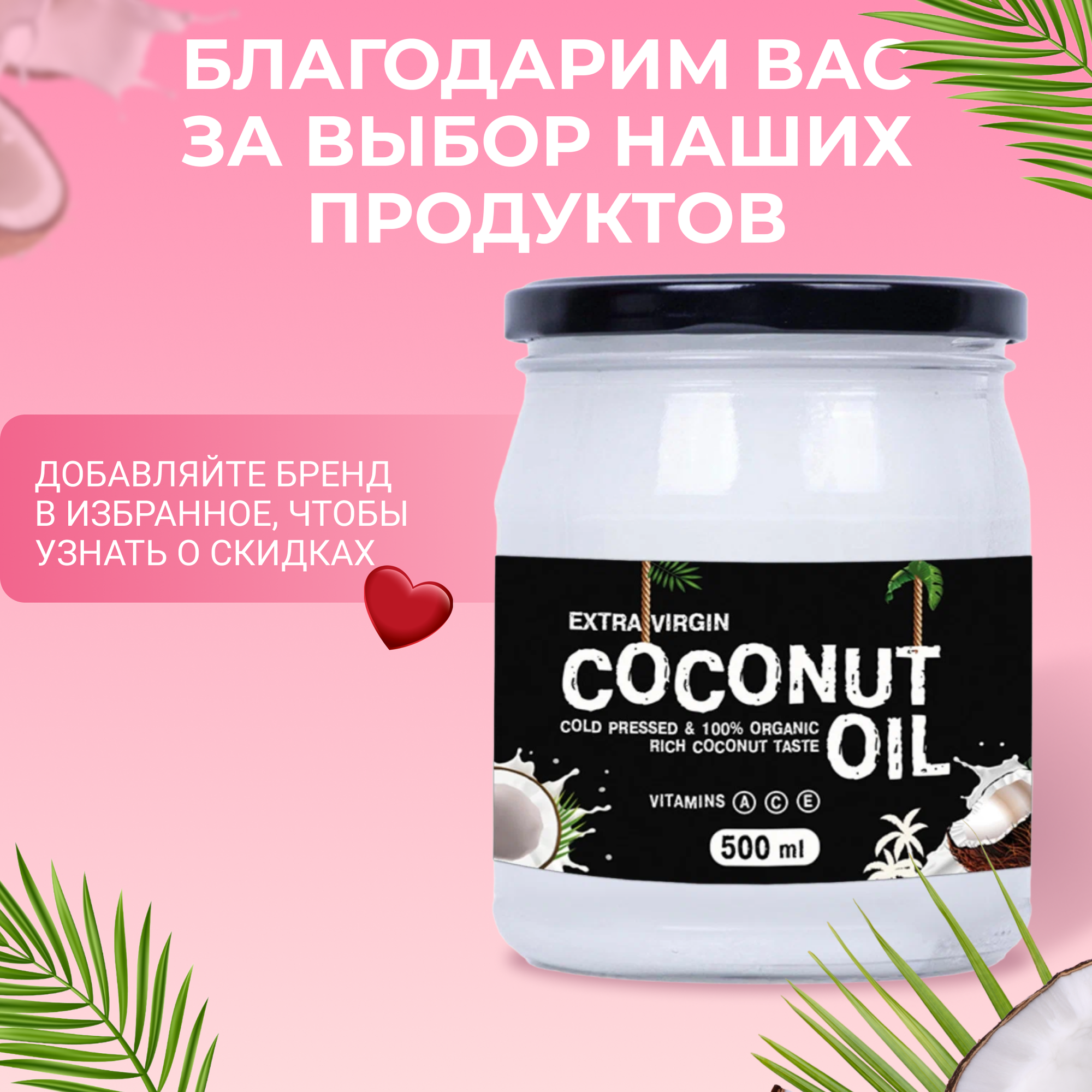Масло кокосовое натуральное нерафинированное EXTRA VIRGIN, холодного отжима, 500 мл, VegaGreen интересное: