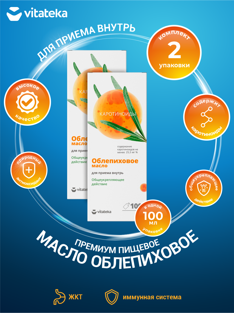 Масло облепиховое Vitateka Алтай премиум пищевое 100 мл. х 2 шт. интересное: