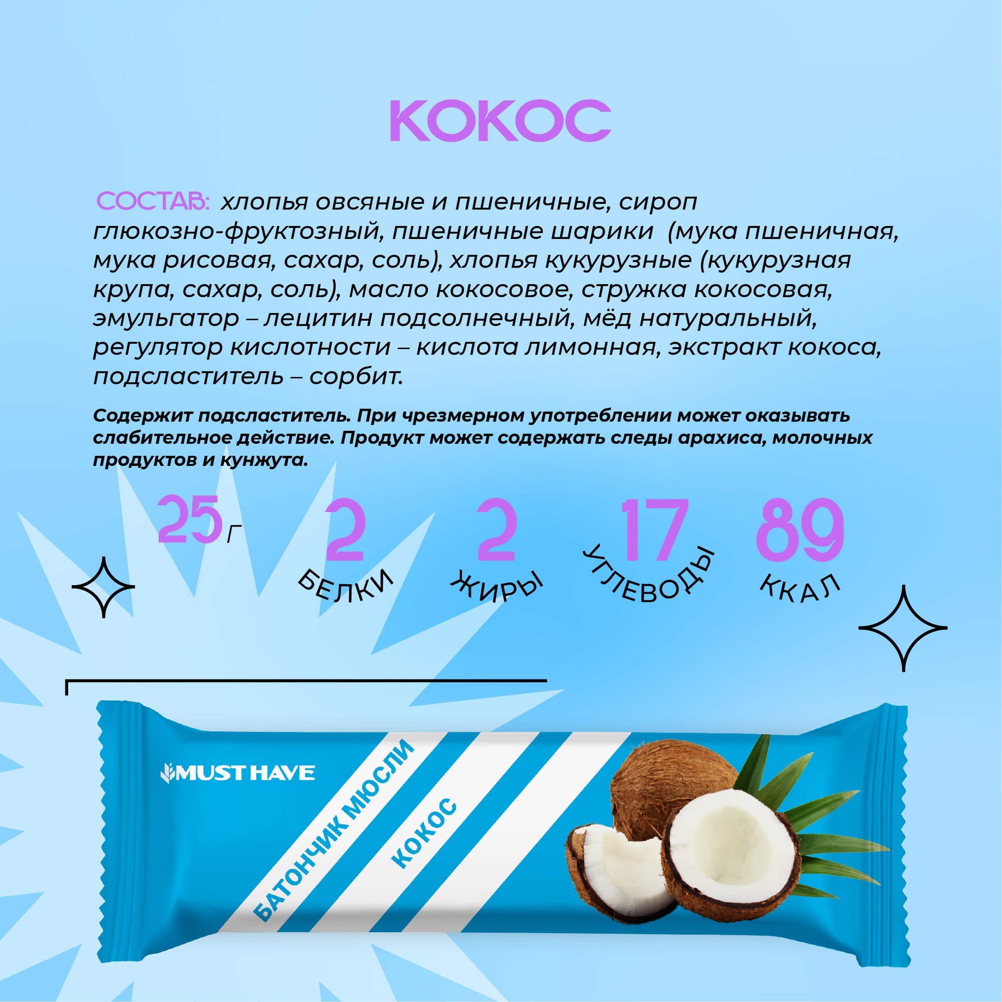Батончик мюсли "Кокос" MUST HAVE, 72 шт по 25г