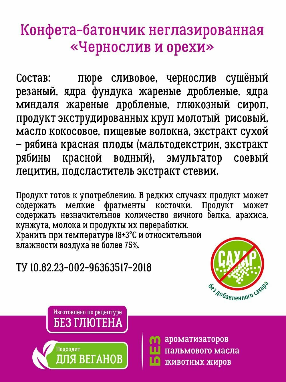 | Стандарты производства | ТУ 10.82.23-002-96363517-2018 |