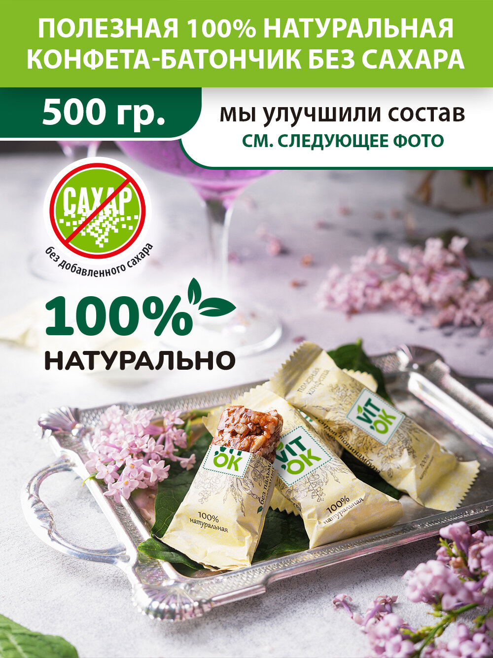 Купить Полезные злаковые конфеты-батончик "Чернослив и семечки" "Vitok" без сахара с топинамбуром/полезная конфета/конфета без сахара/100% натурально 500гр.