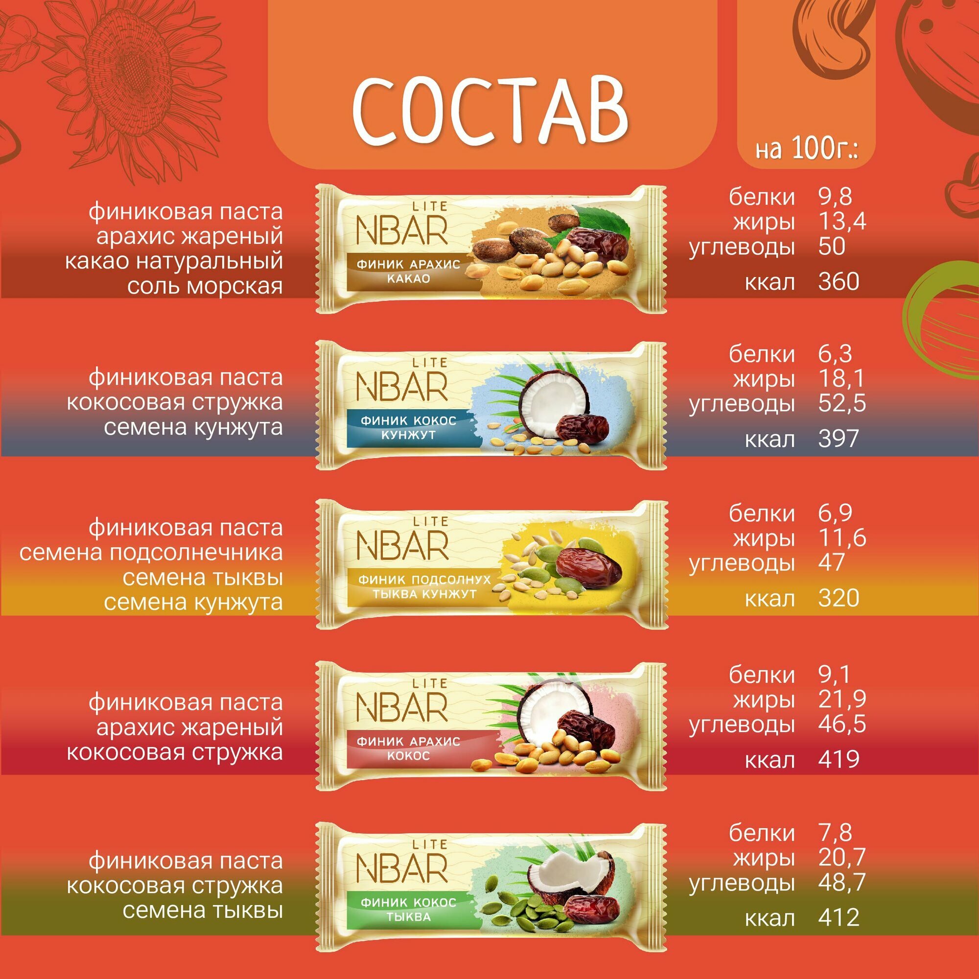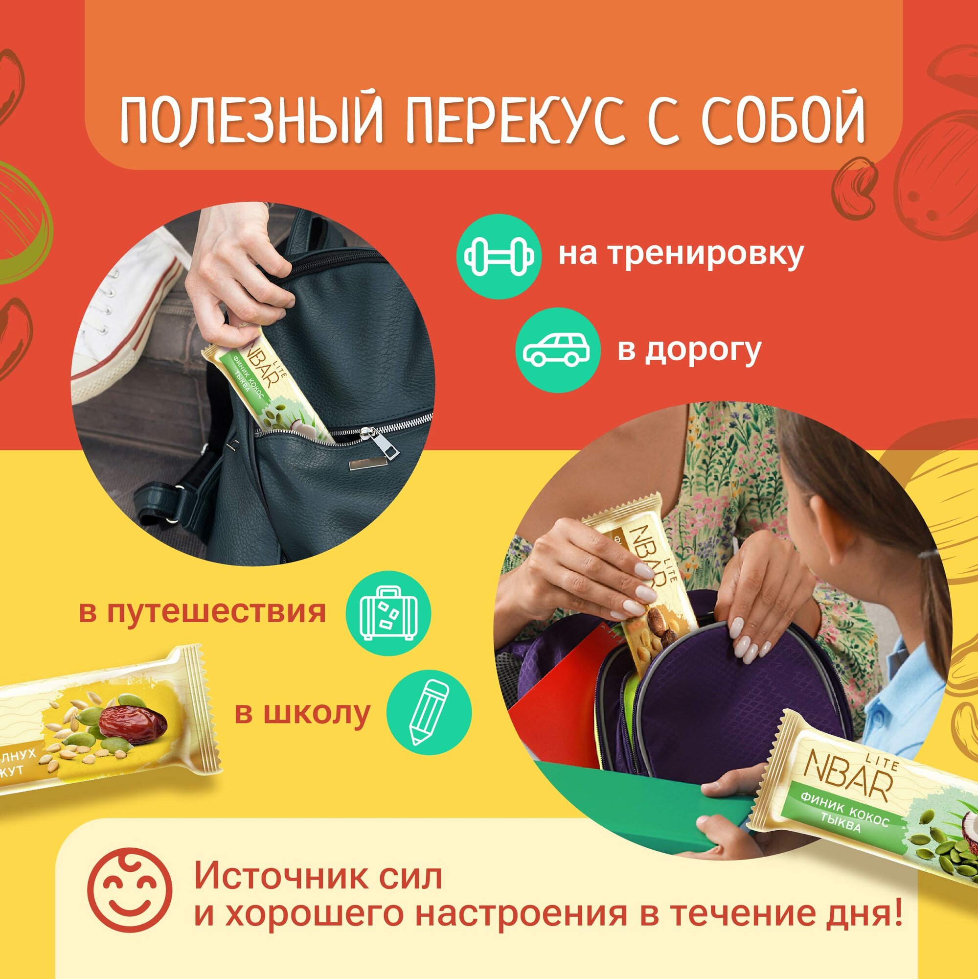 Батончики без сахара, NBar Lite, диетические из натуральных сухофруктов, семян и орехов / полезный перекус, набор 10 шт, Ассорти семян и орехов