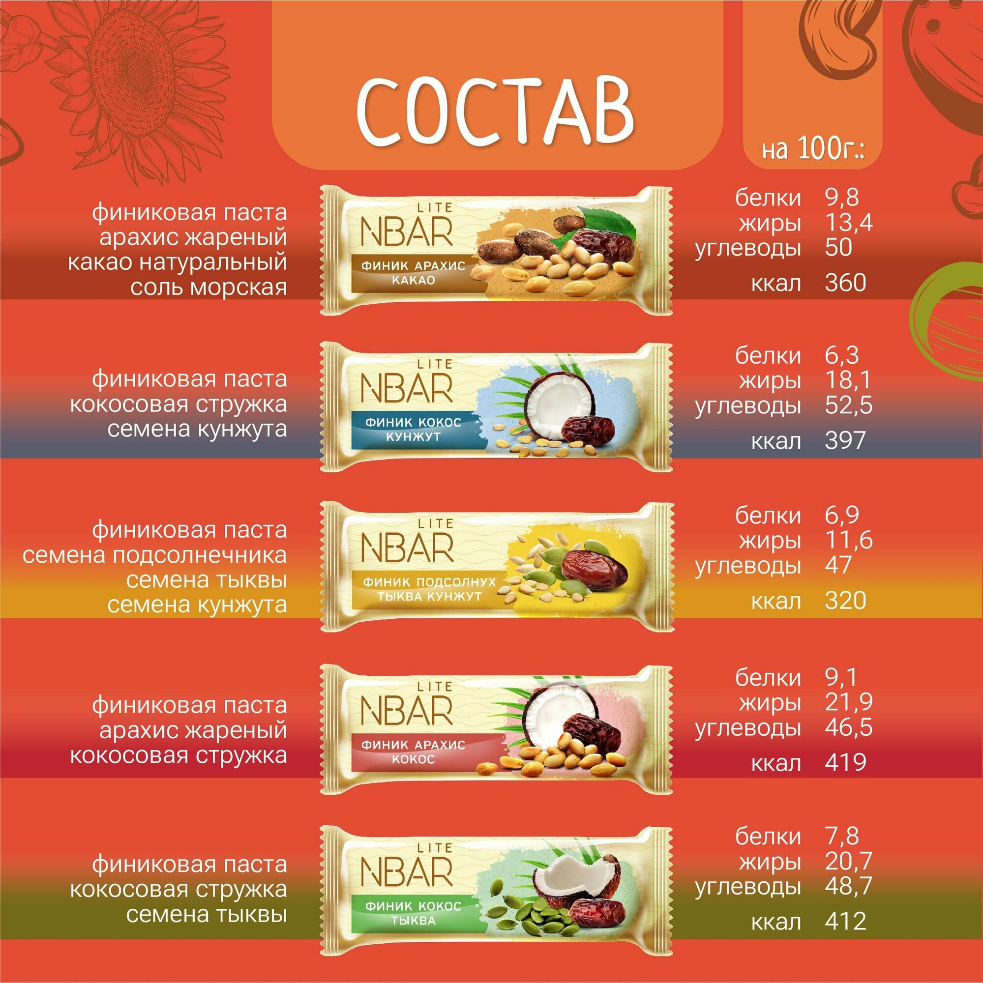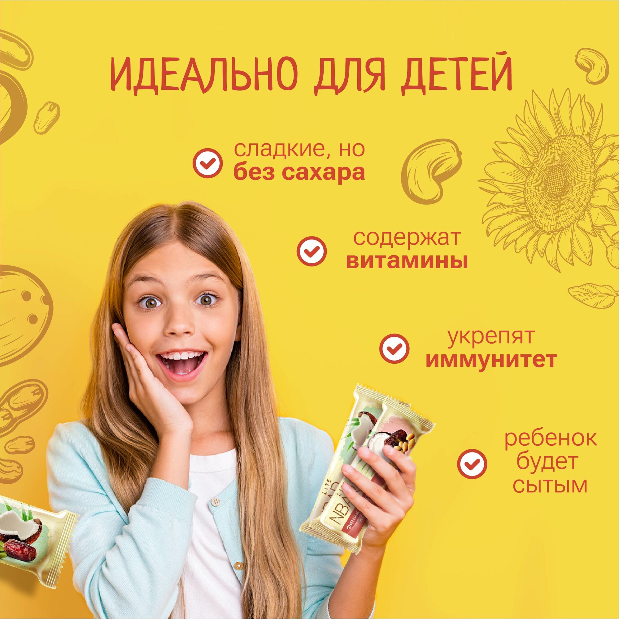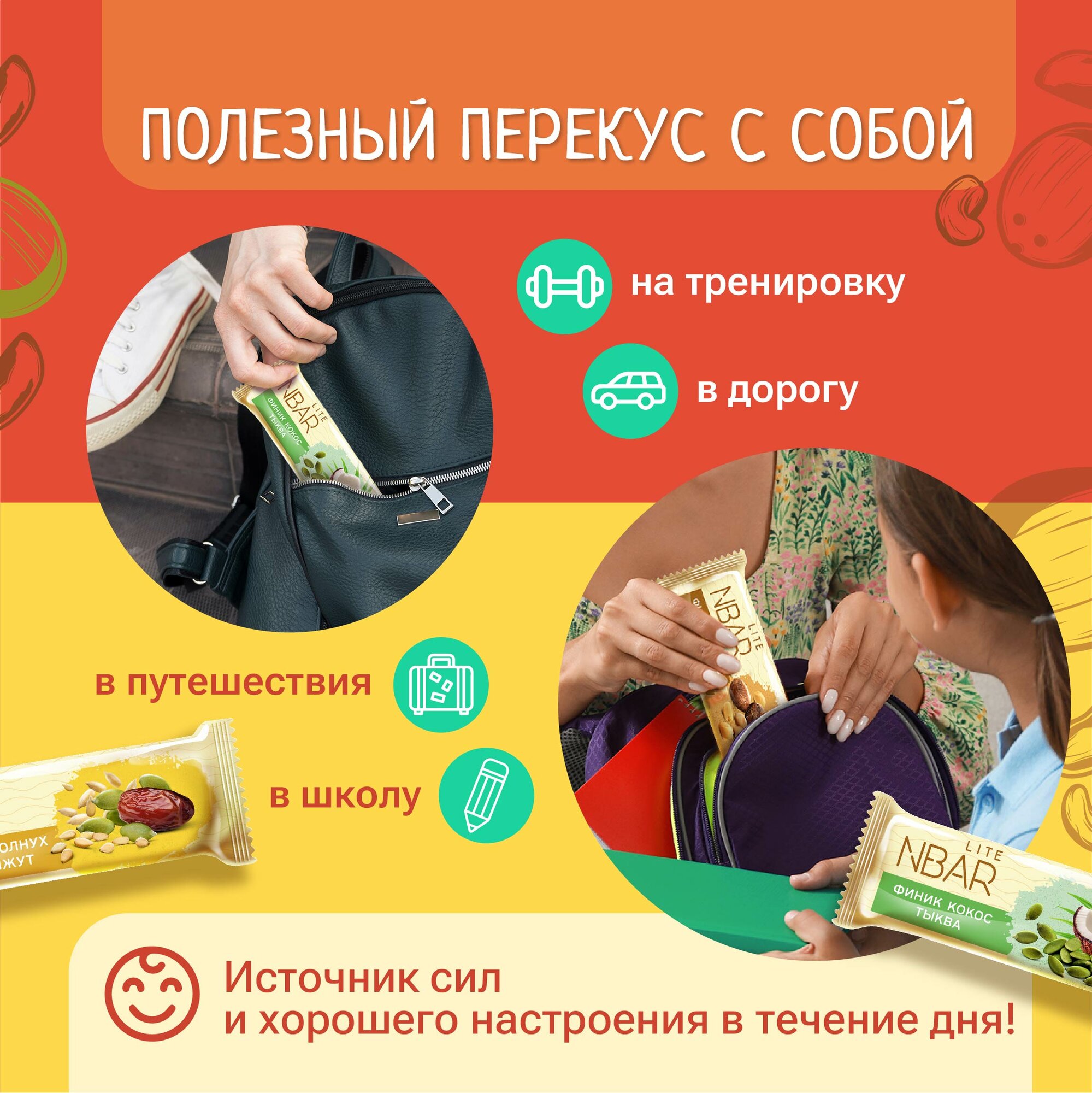 Батончики без сахара, NBar Lite, диетические из натуральных сухофруктов, семян и орехов / полезный перекус, набор 10 шт, Ассорти семян и орехов