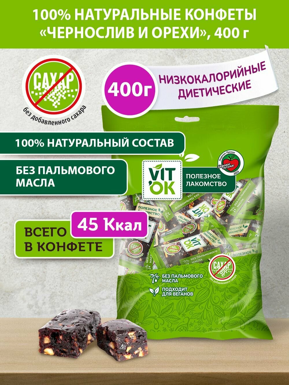 Ниже Вы можете прочитать отзывы на Конфета-батончик Vitok 100% натуральная полезная без сахара Чернослив и орехи, 400 г, ознакомится с подробными характеристиками, посмотреть интересные обзоры и фотографии на Конфета-батончик Vitok 100% натуральная полезная без сахара Чернослив и орехи, 400 г.