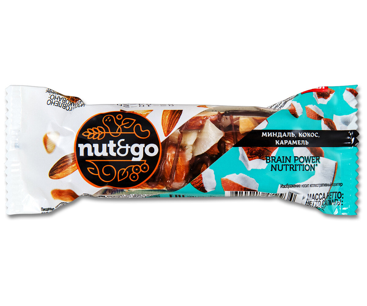 Ореховый батончик Nut&Go миндаль и кокос, 36 г, 10 шт.