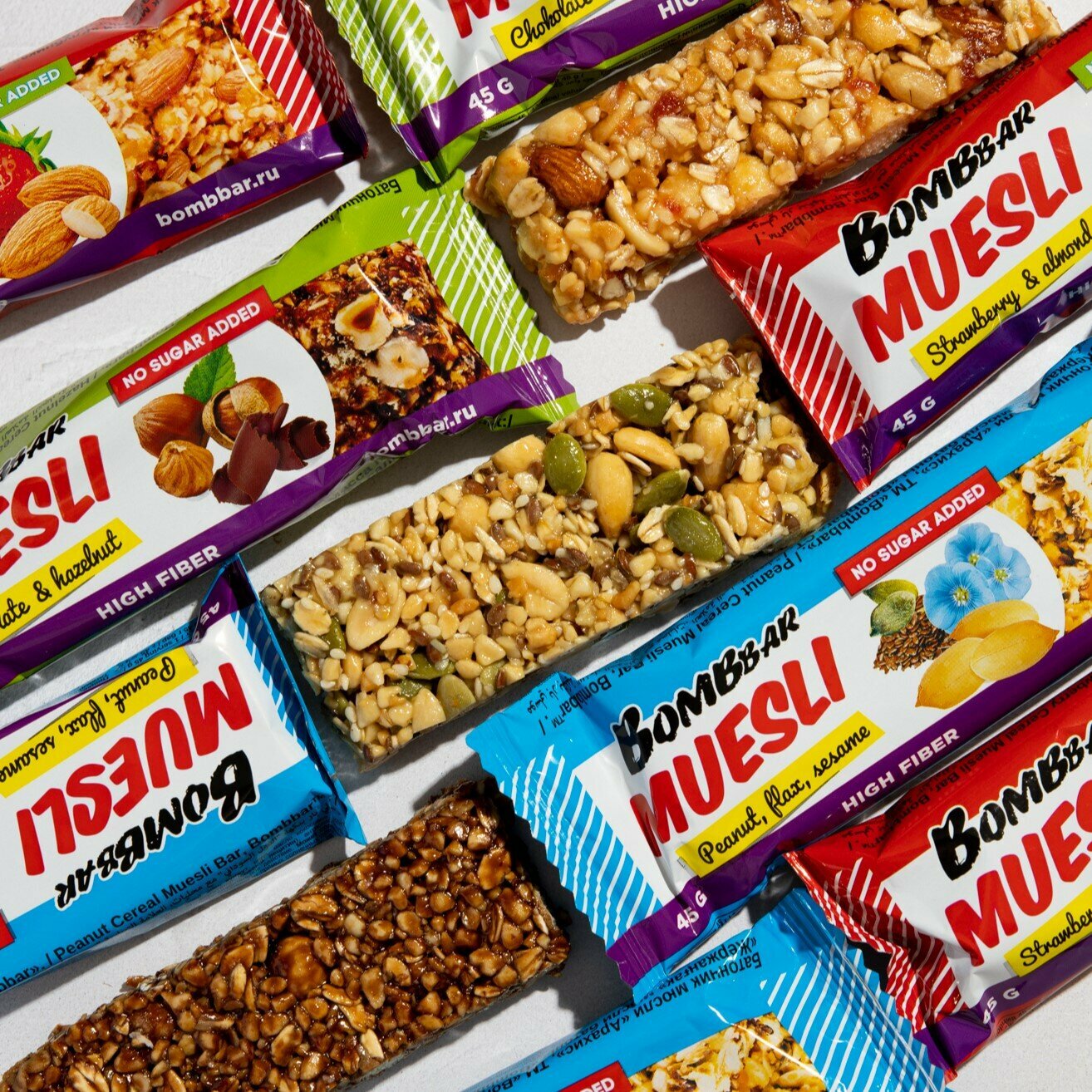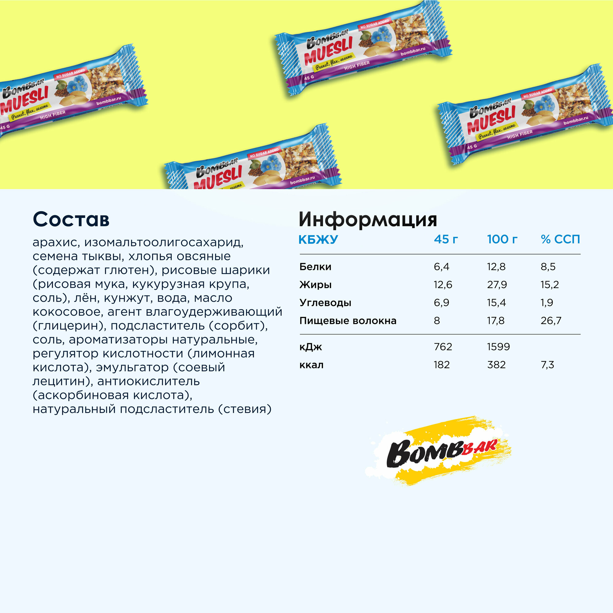 Батончики мюсли BombBar без сахара Ассорти Мини, 5шт х 45г интересное: