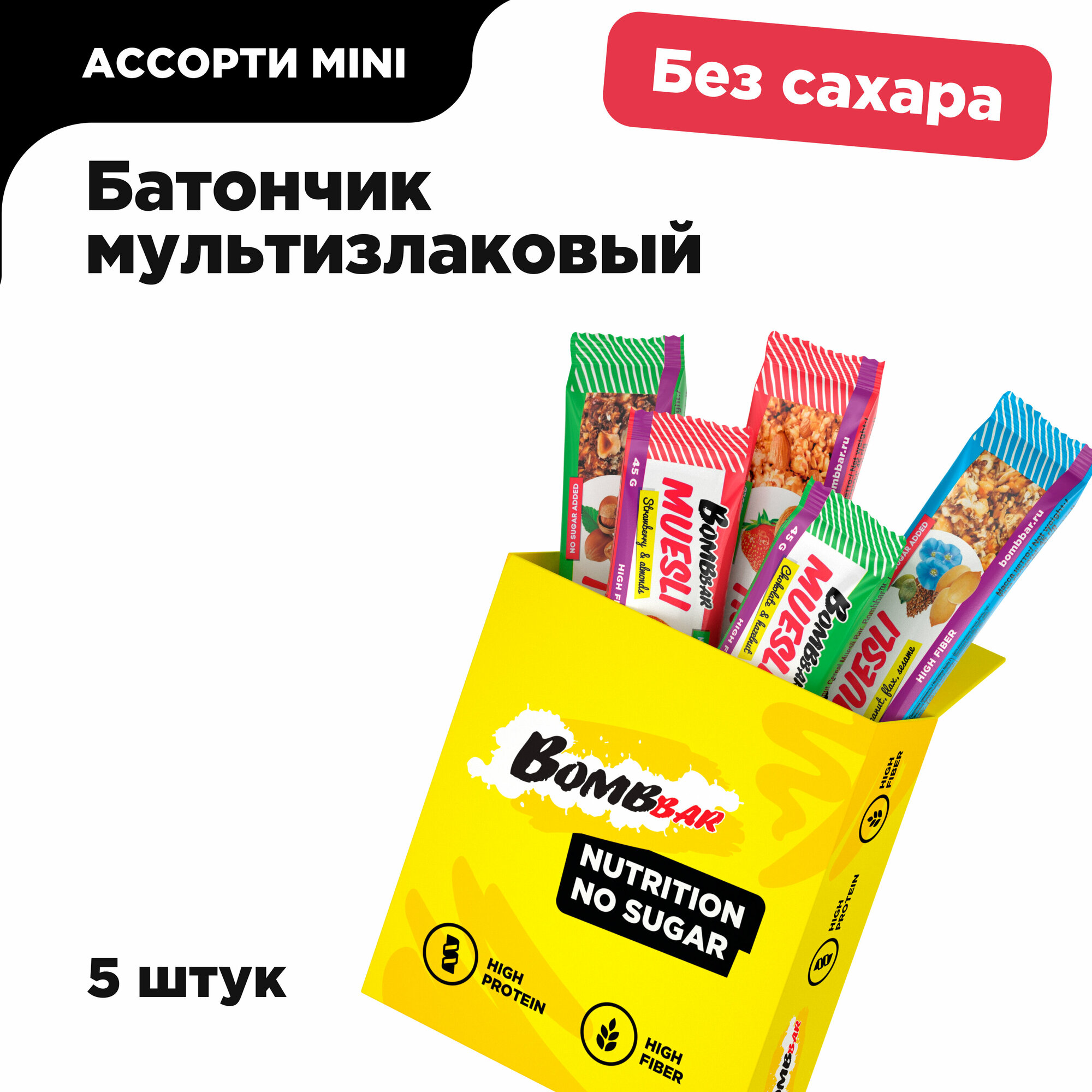 Купить Батончики мюсли BombBar без сахара Ассорти Мини, 5шт х 45г