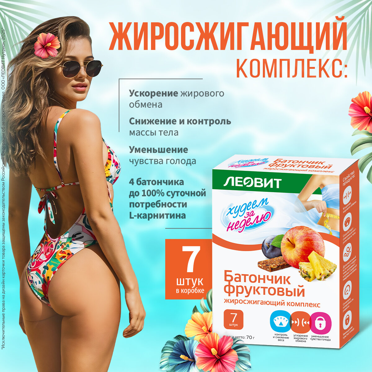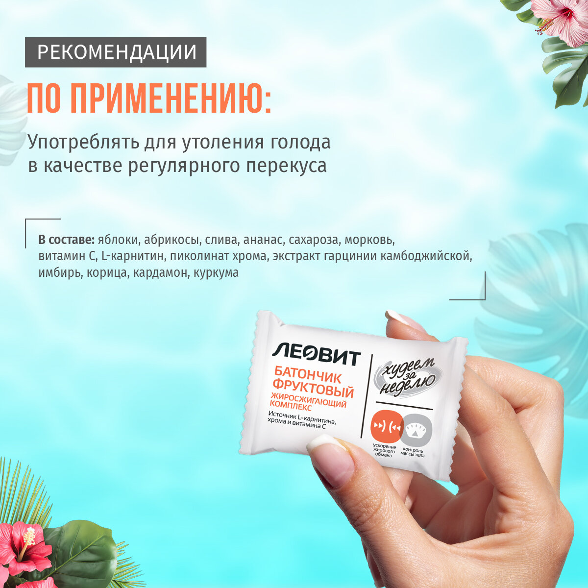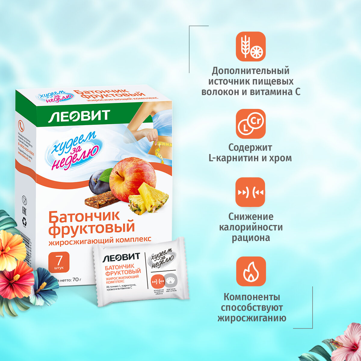Леовит Худеем за неделю Батончик фруктовый Жиросжигающий комплекс. 7 шт. по 10 г. Упаковка 70 г. интересное: