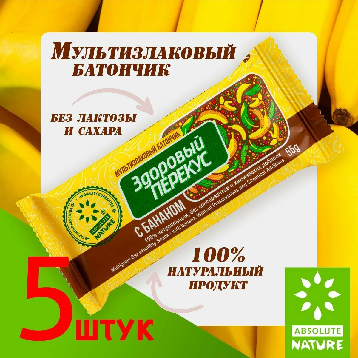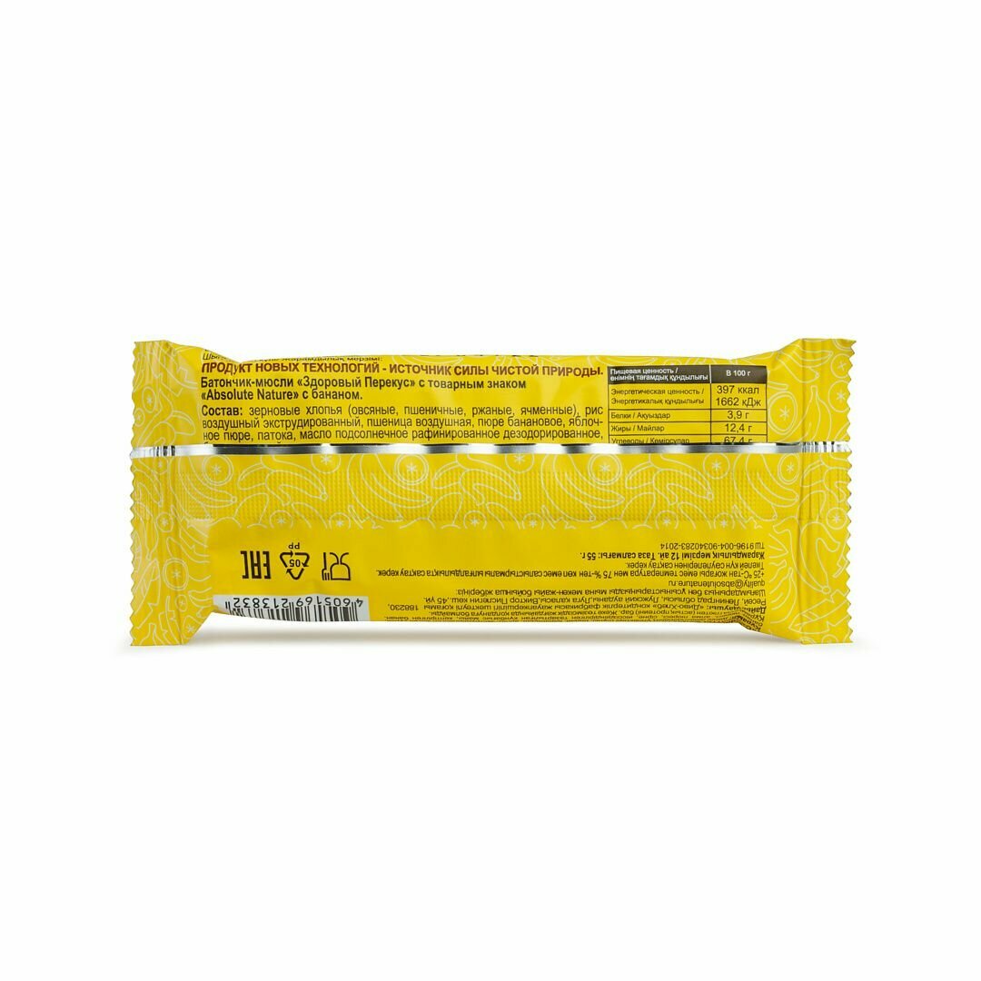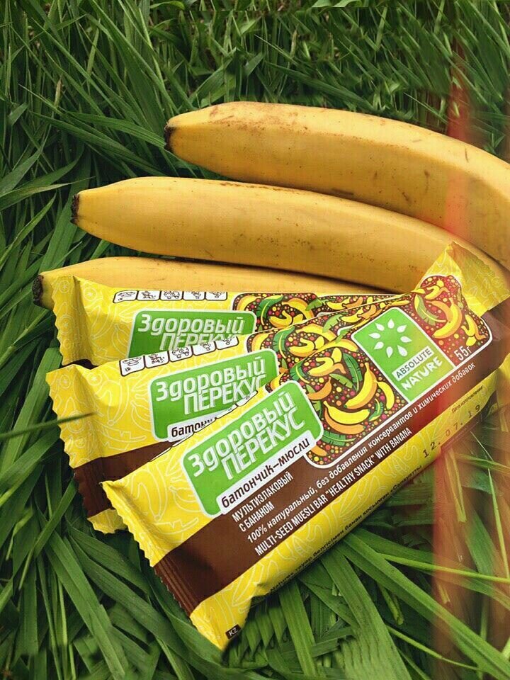 Батончики без сахара Absolute Nature "Здоровый перекус" с бананом 55гр. 5 шт. интересное: