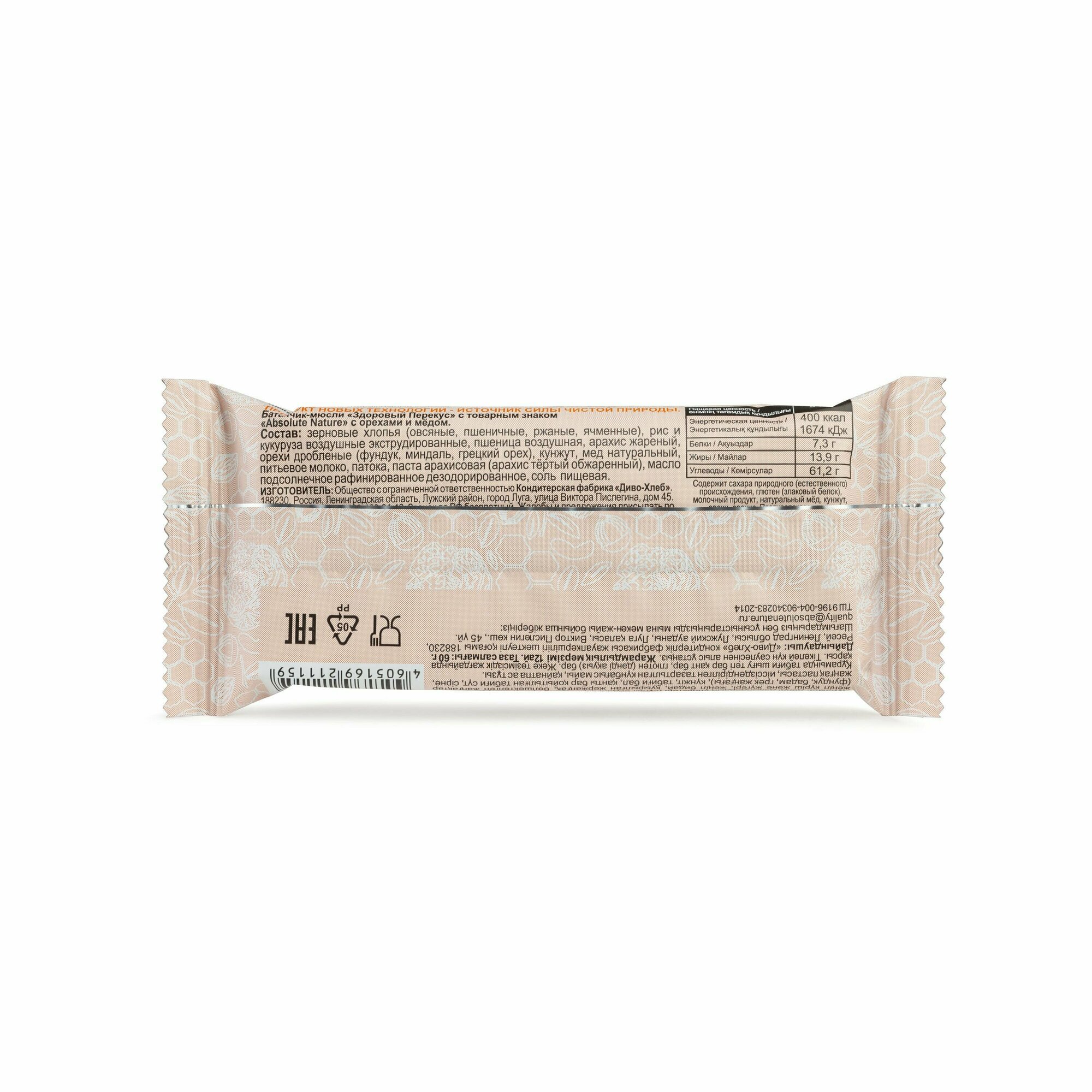 Absolute NATURE Батончики "Здоровый перекус" с орехами и мёдом 60г (20 штук в блоке)