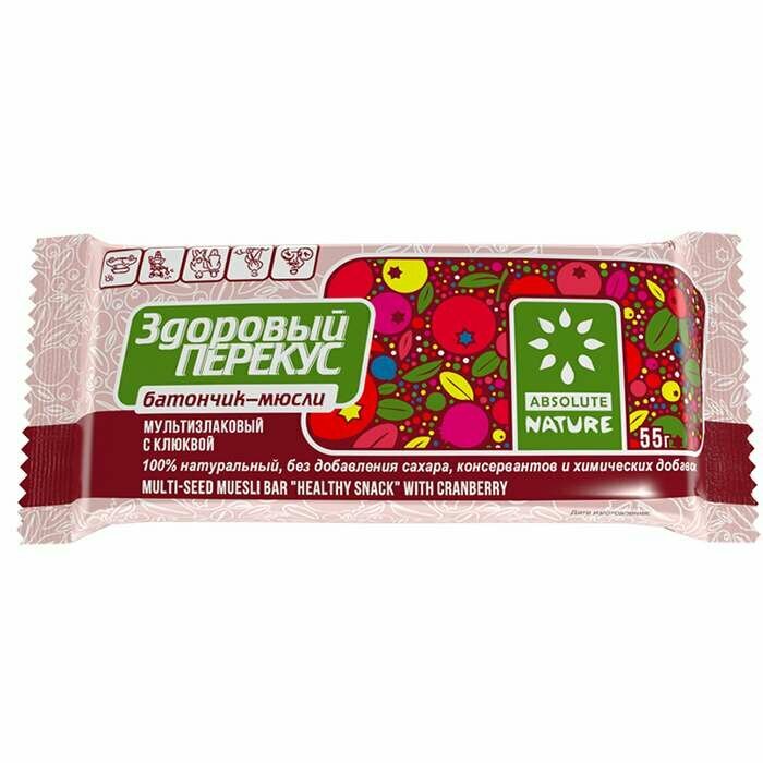 Злаковый батончик Absolute NATURE Здоровый перекус без сахара с клюквой, 55 г интересное: