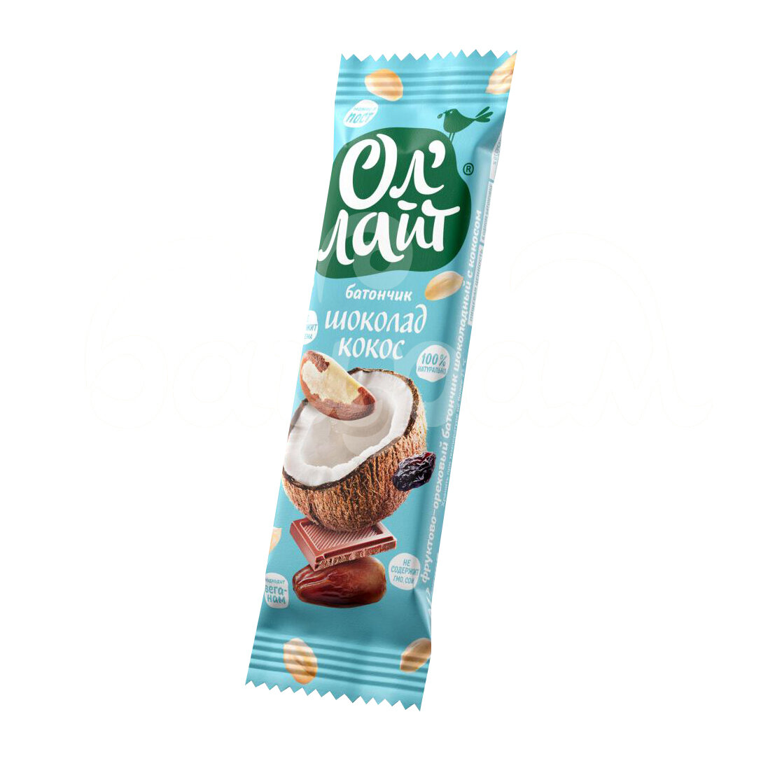Купить Ол'Лайт Батончик Шоколадный с Кокосом Фруктово-Ореховый 30 гр