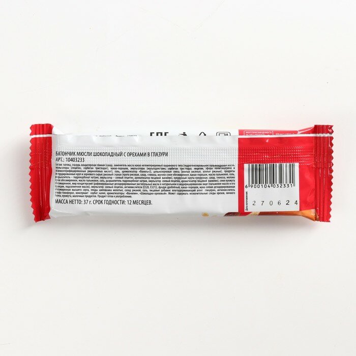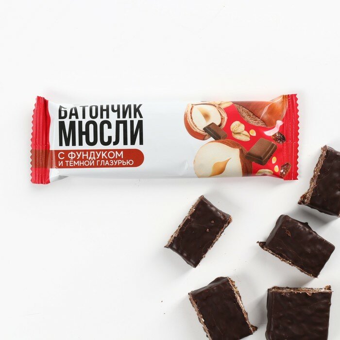 Батончик мюсли с фундуком и тёмной глазурью, 37 г интересное: