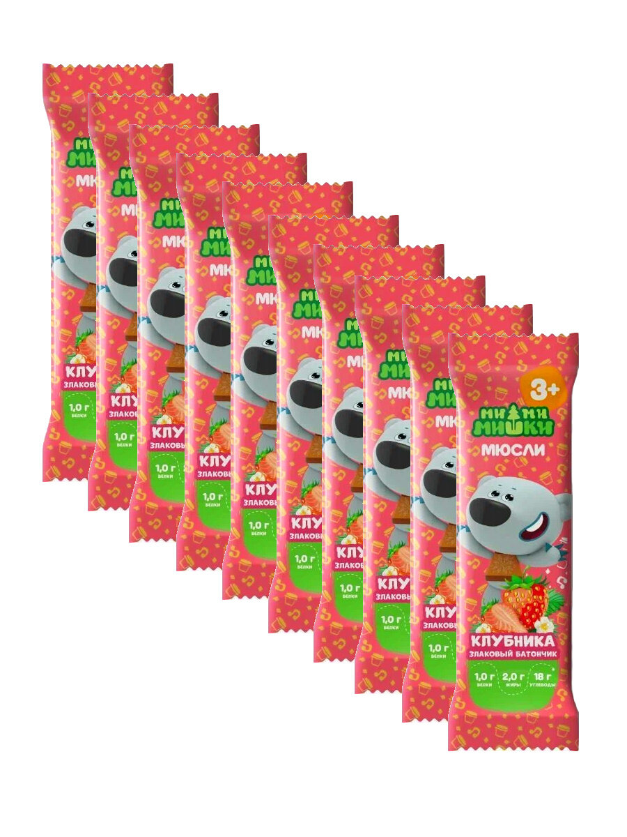 Купить Батончик-мюсли злаковый Ми-Ми-Мишки Клубника 24 гр. х 10 шт.